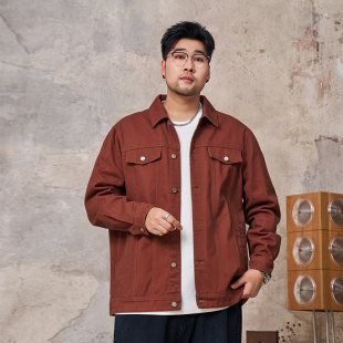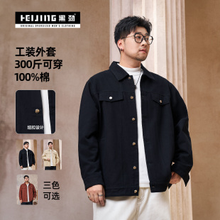 工装 2026年春季 夹克胖子宽松休闲加肥加大牛仔外套 男装 黑劲大码