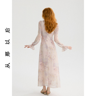 从那以后法式 裙子荷叶边长裙女秋 复古连衣裙高级感穿搭碎花裙长袖