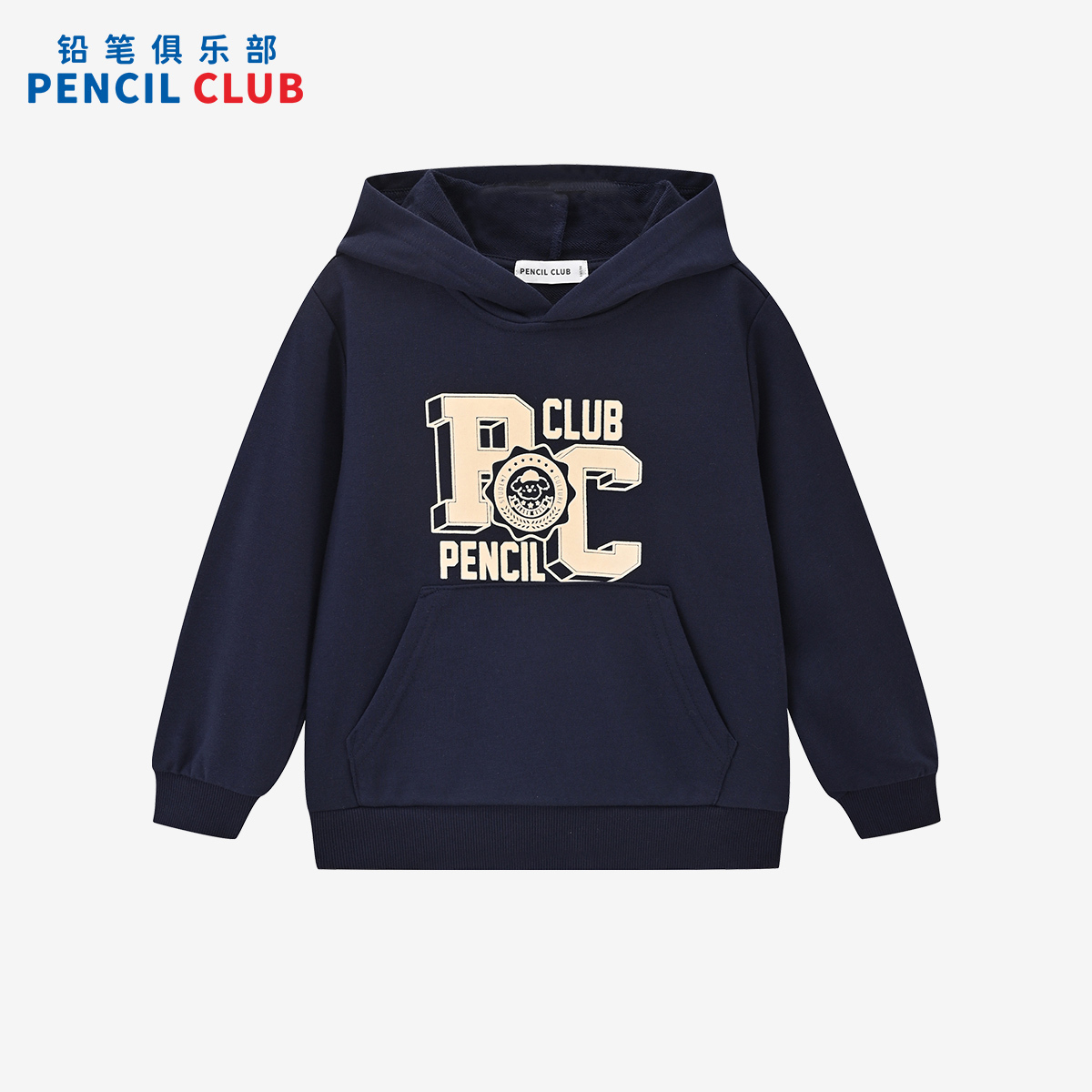 铅笔俱乐部2025秋装 男童卫衣中大童带帽T恤儿童字母印花上衣 新款