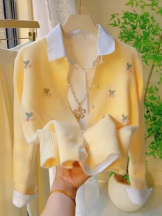 洋气百搭针织衫 温柔风软糯黄色毛衣开衫 时尚 2025新款 外套女秋冬季