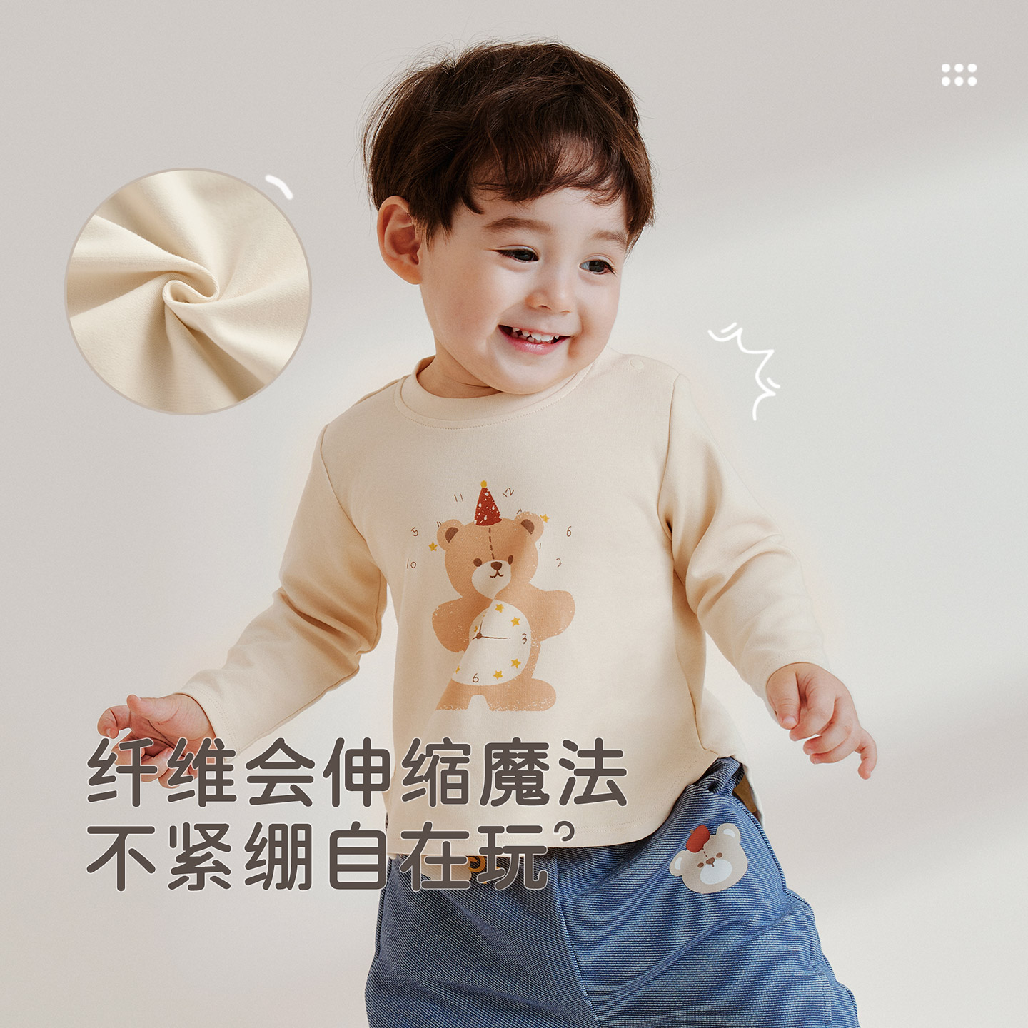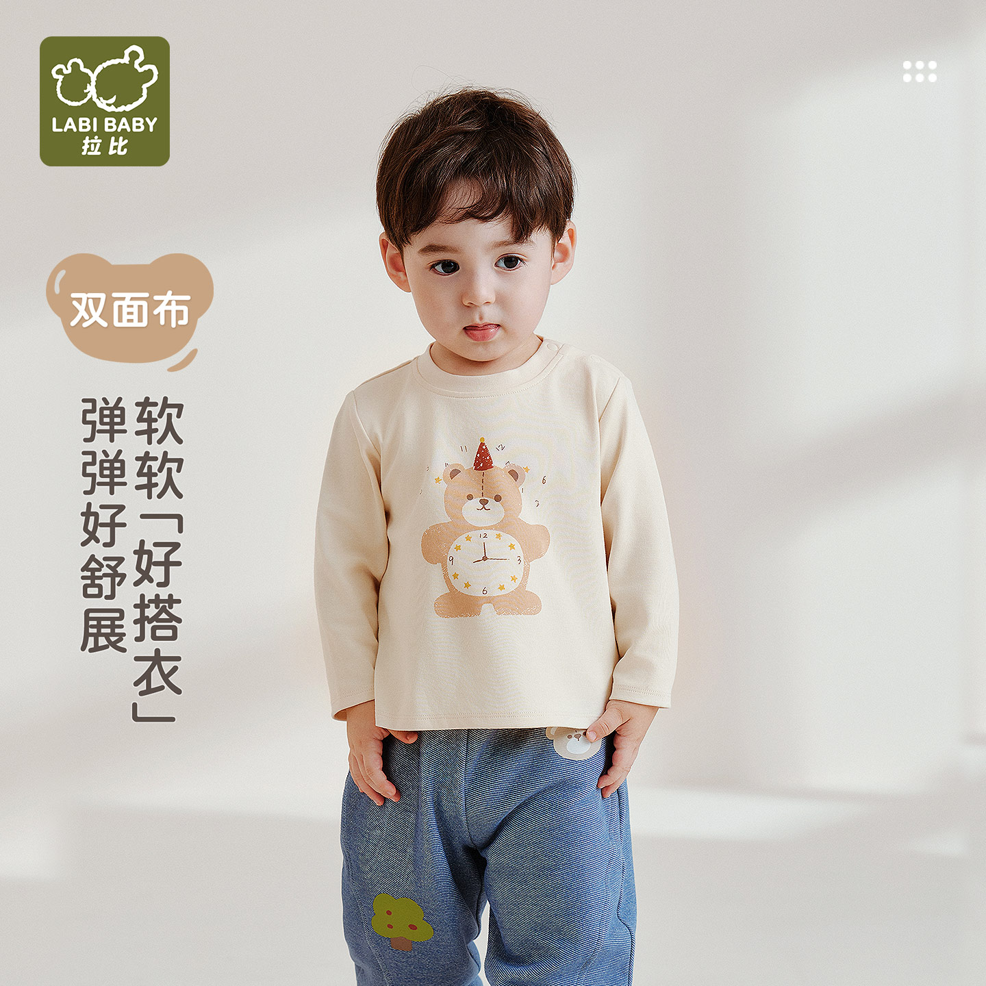 拉比儿童圆领衣长袖 25秋冬新套头弹力男女童百搭休闲T恤打底上衣
