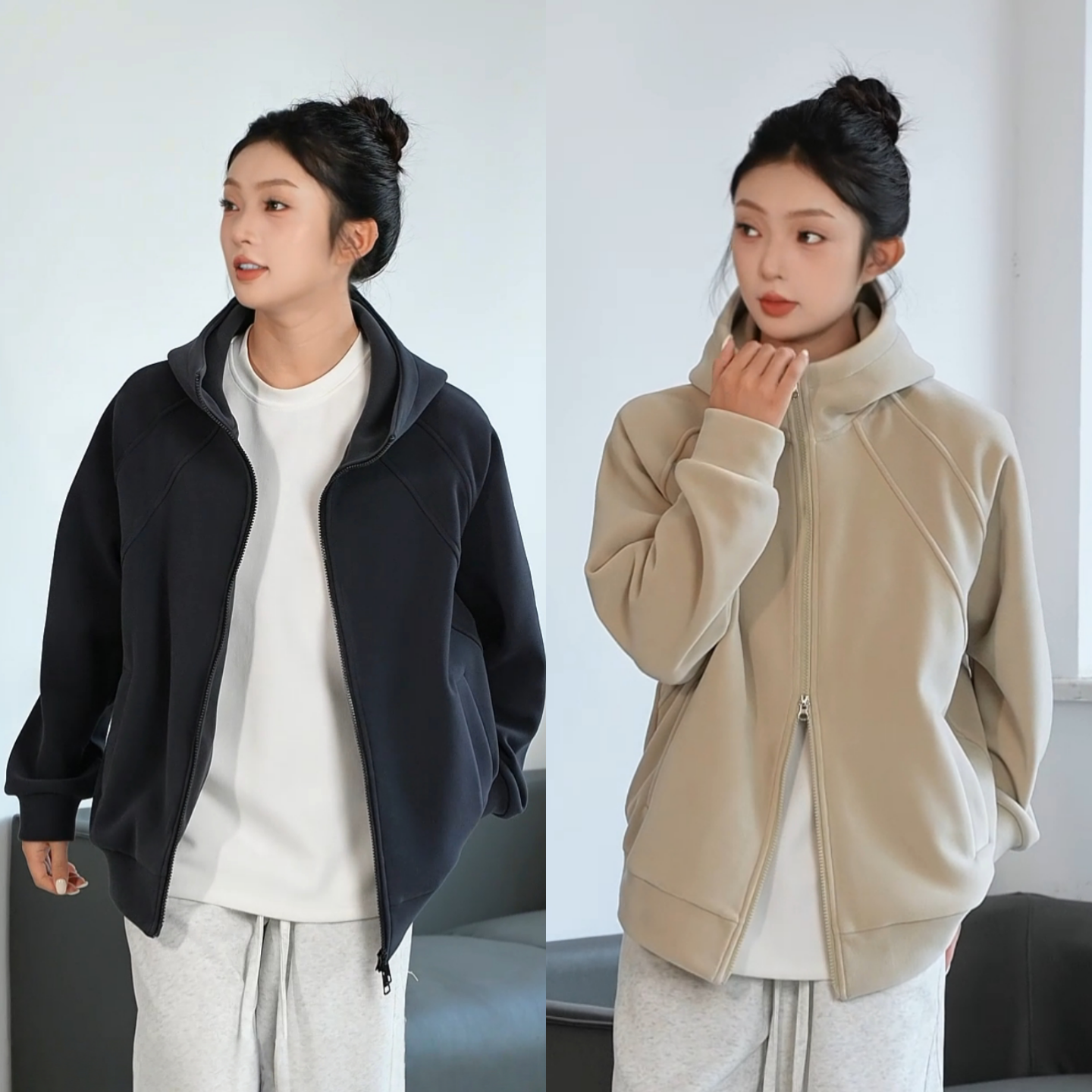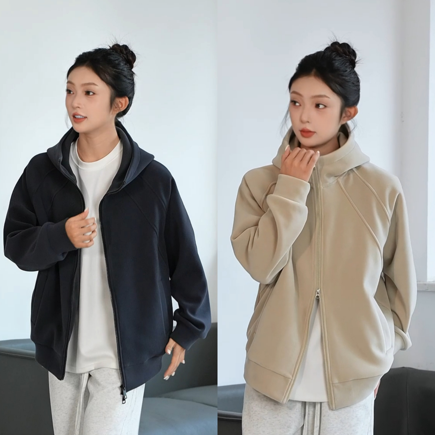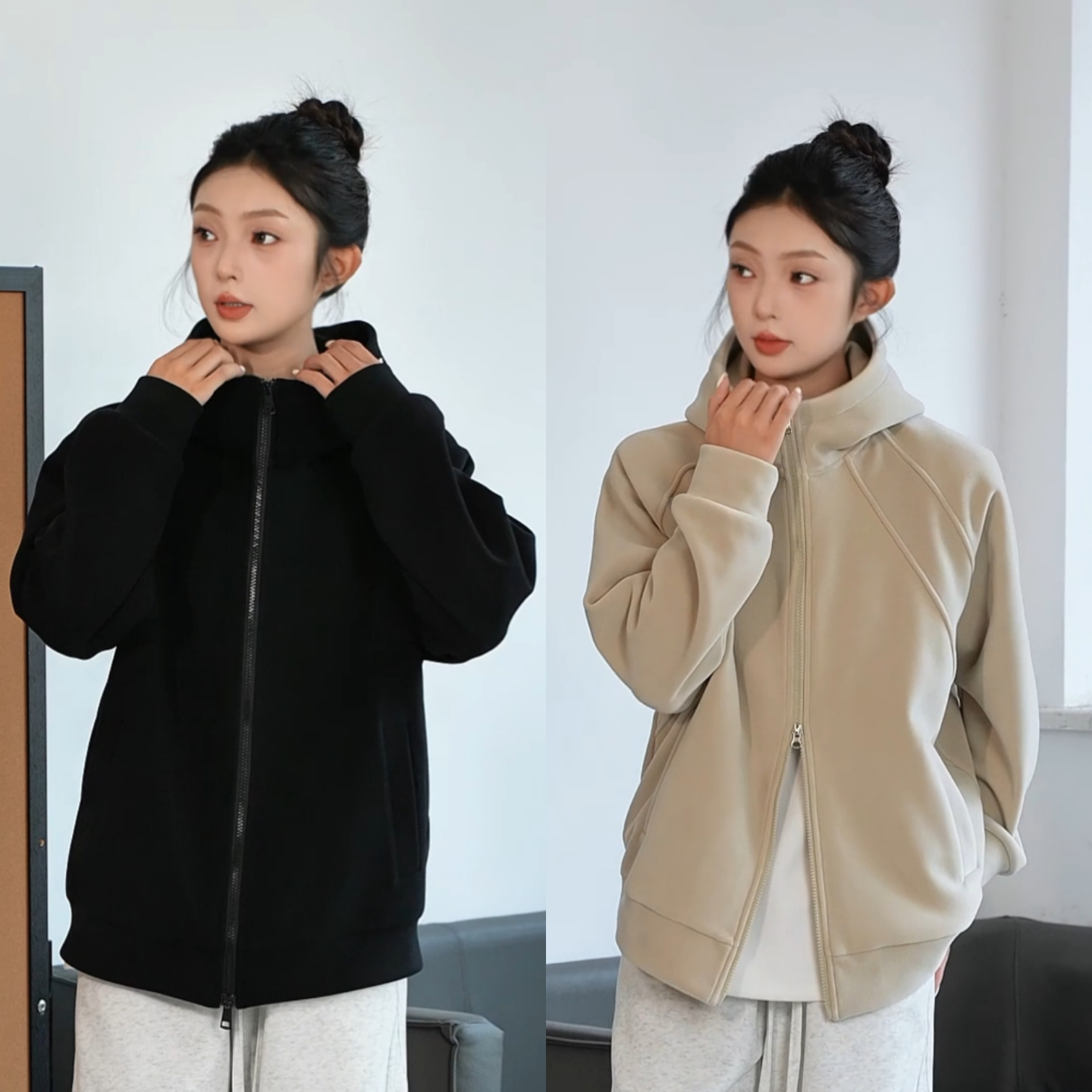 nice r.系列500G全棉磨毛针织拉链休闲连帽卫衣NEQ04009 rice好饭