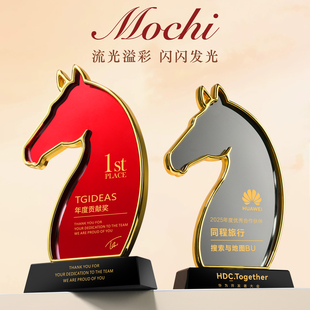 2025年会奖杯定制马年新款 水晶奖牌定做企业优秀员工团队颁奖刻字