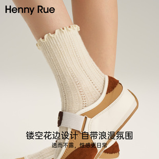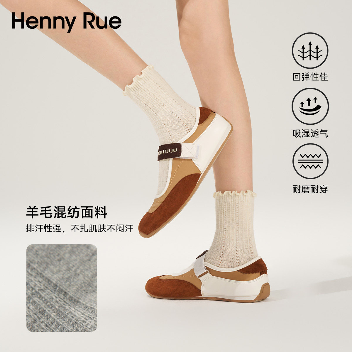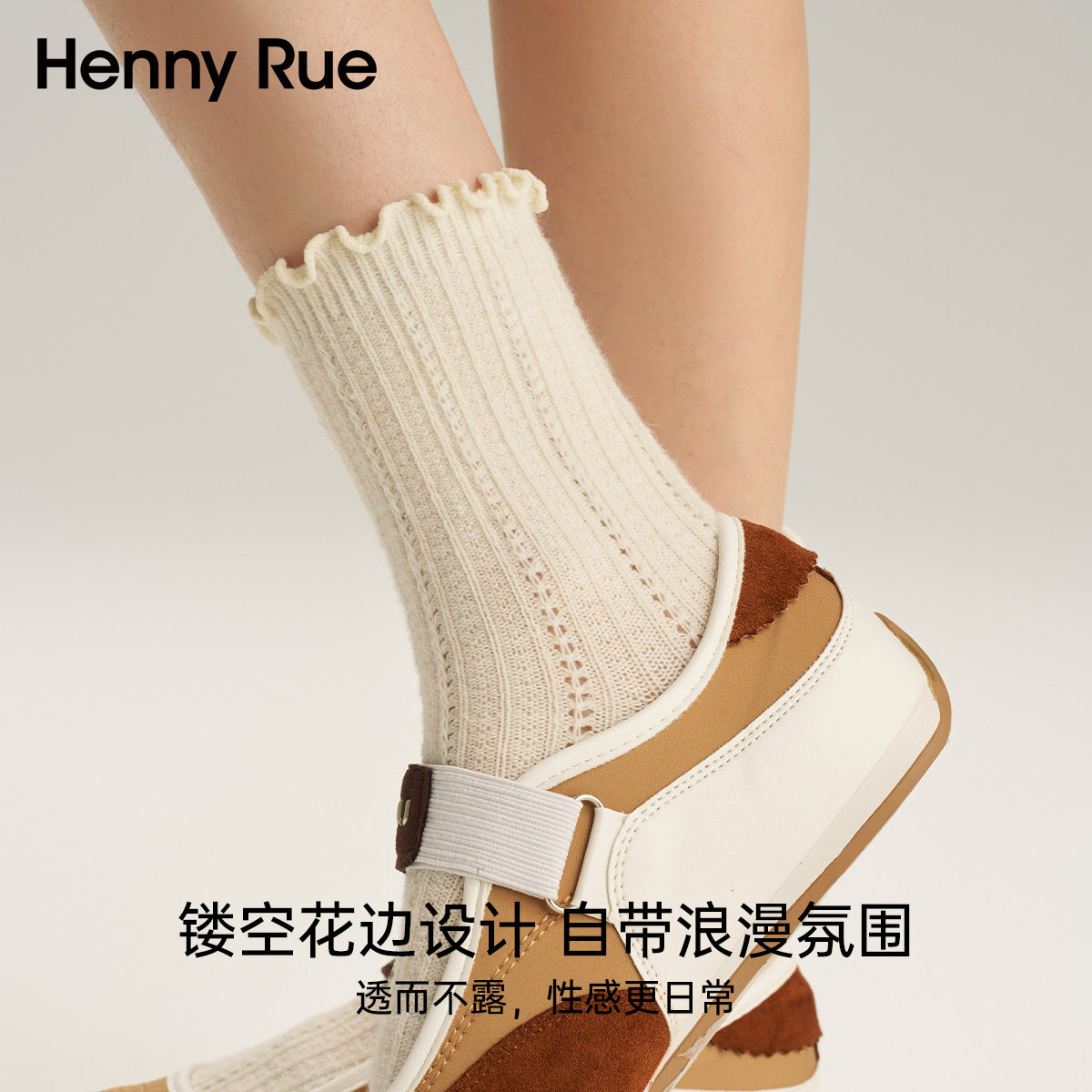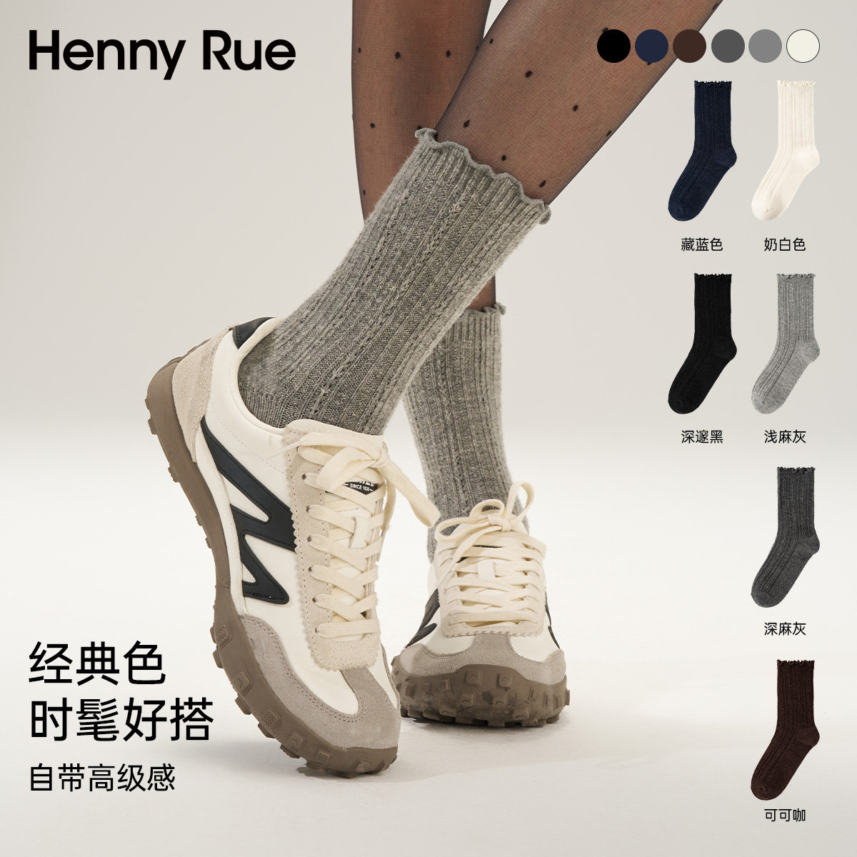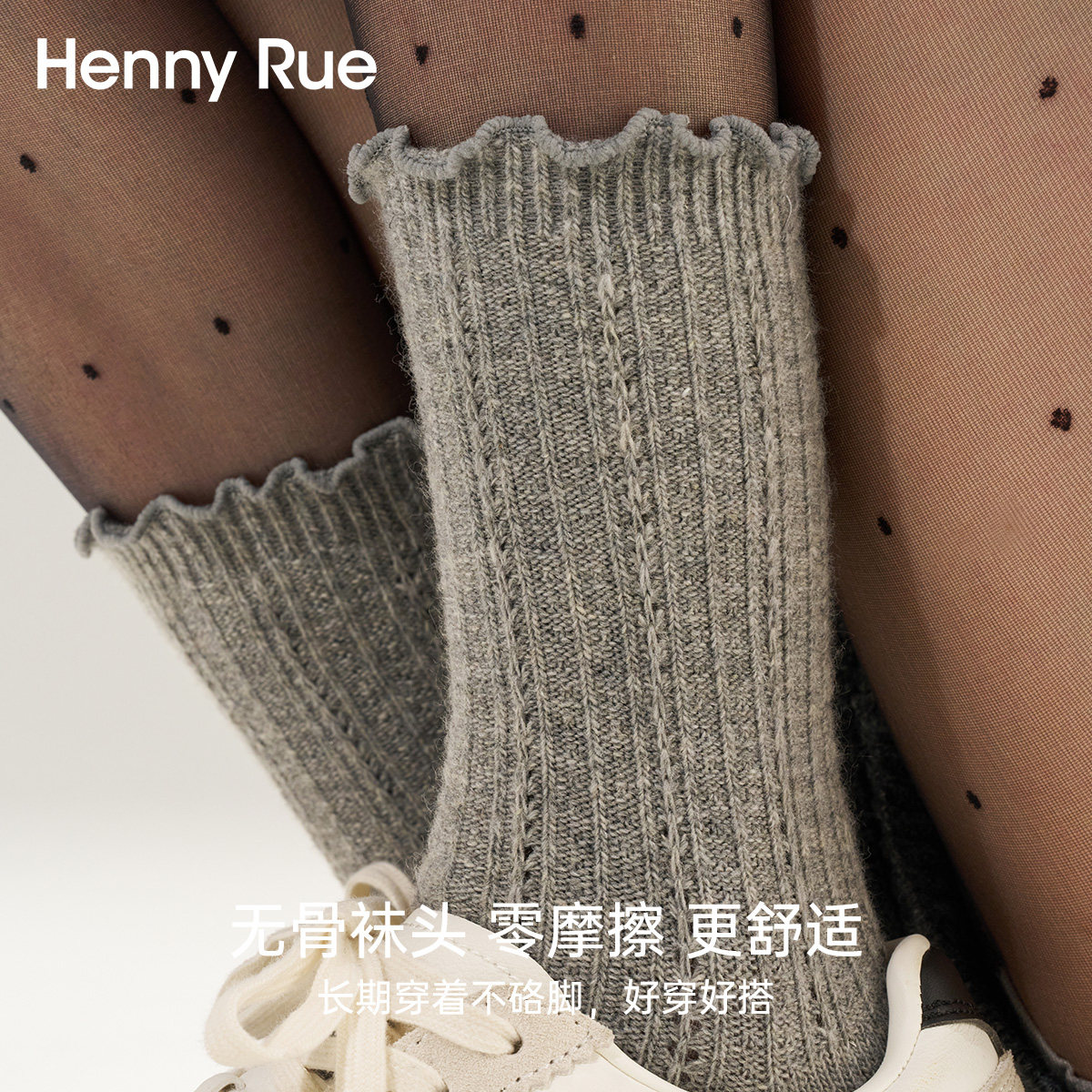 HENNY RUE亨尼露木耳边中筒袜女秋冬坑条保暖袜子学院风米色中袜