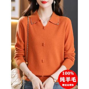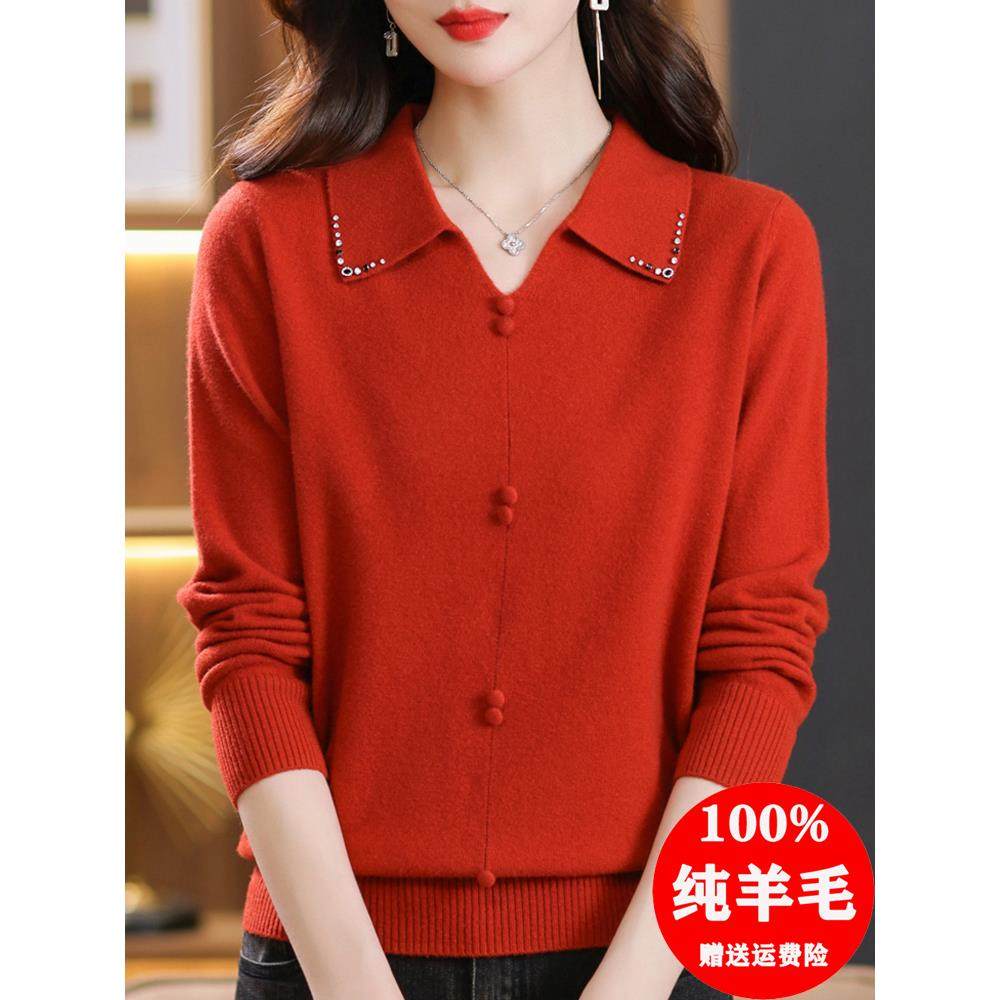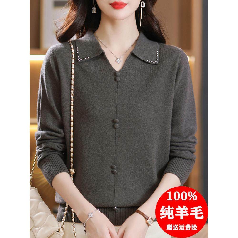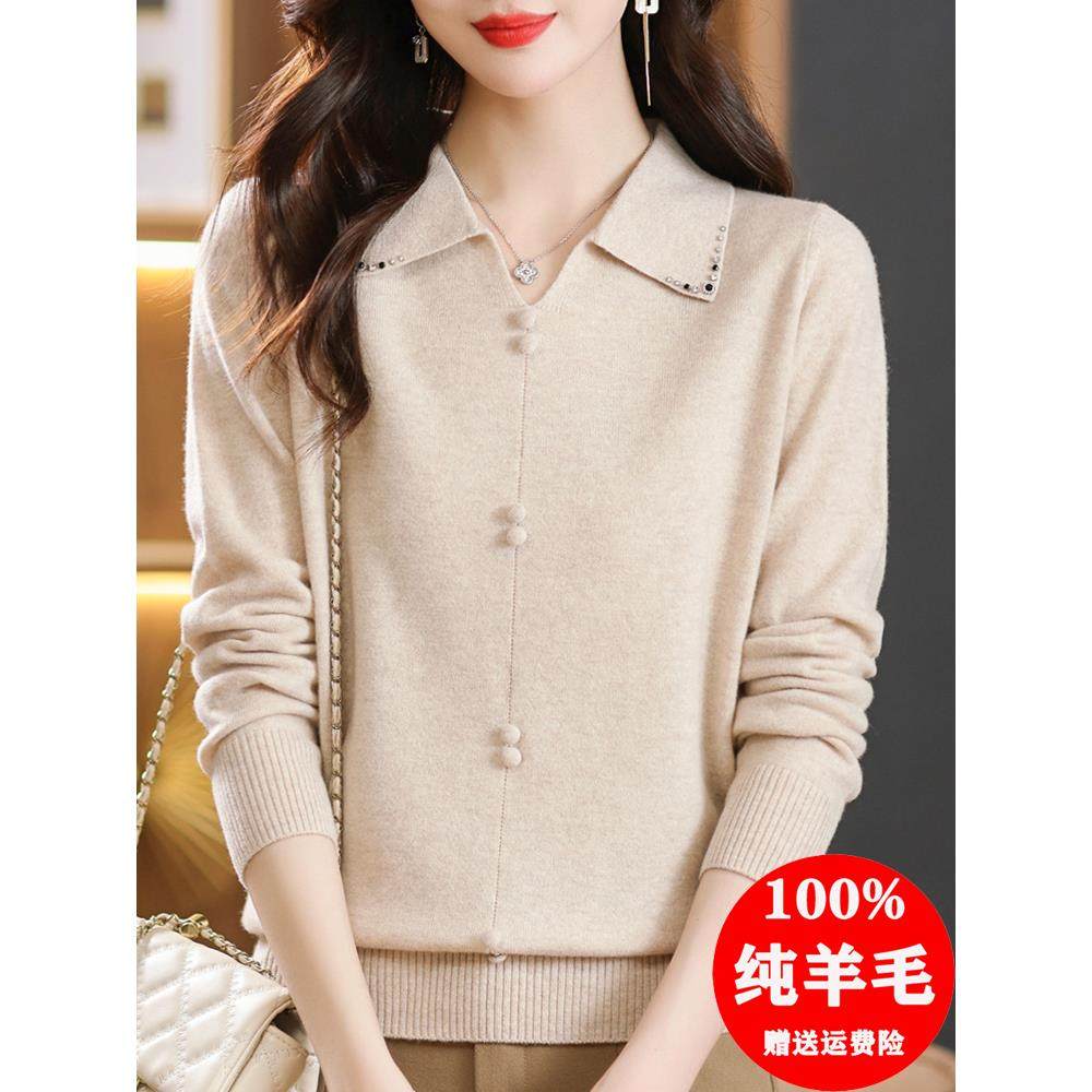 西式 中老年100纯羊毛衫 衬衫 马球领妈妈秋冬毛衣下装 上衣针织 女式