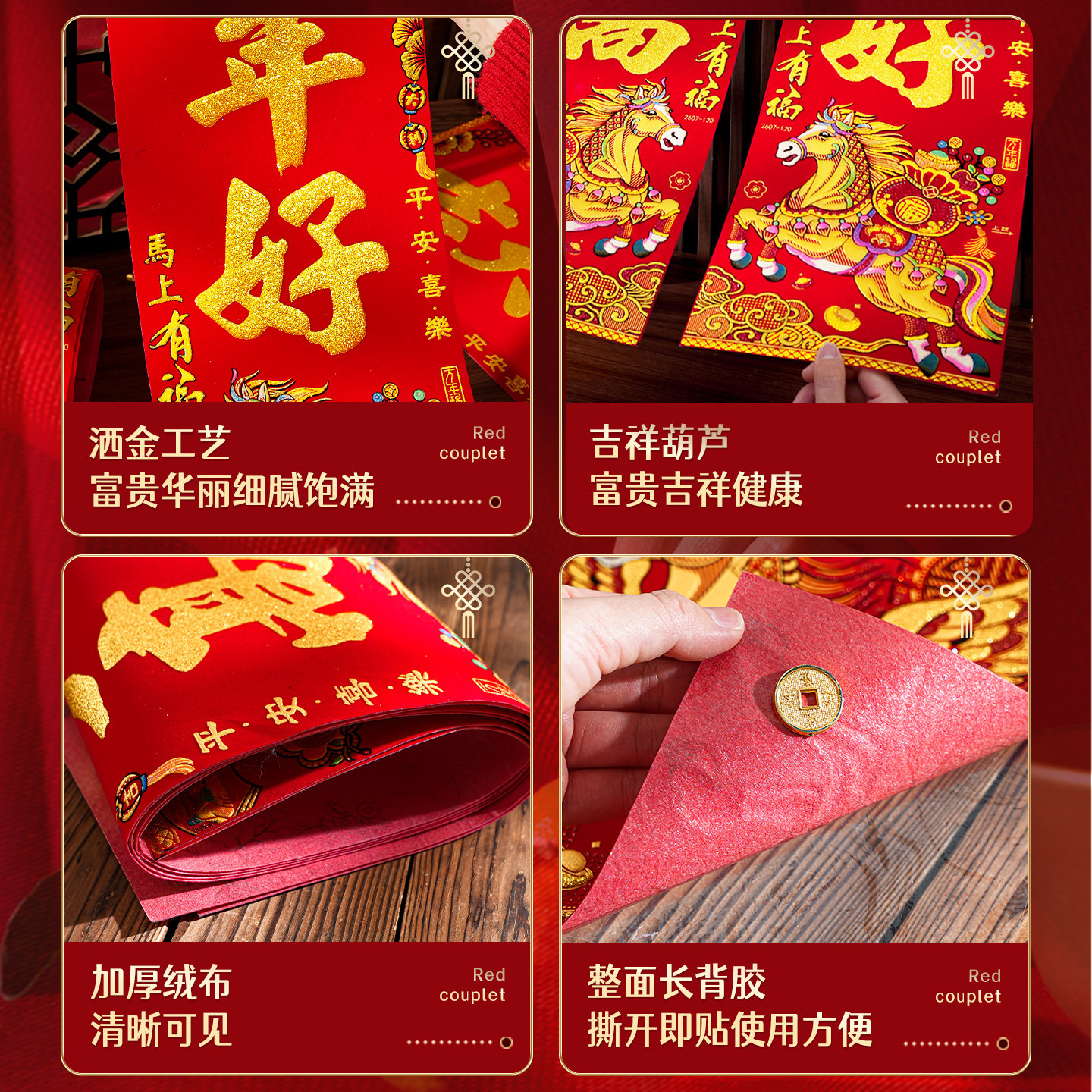 2026马年对联新款 饰春节高档大气绒布春联过年家用门联 新年福字装