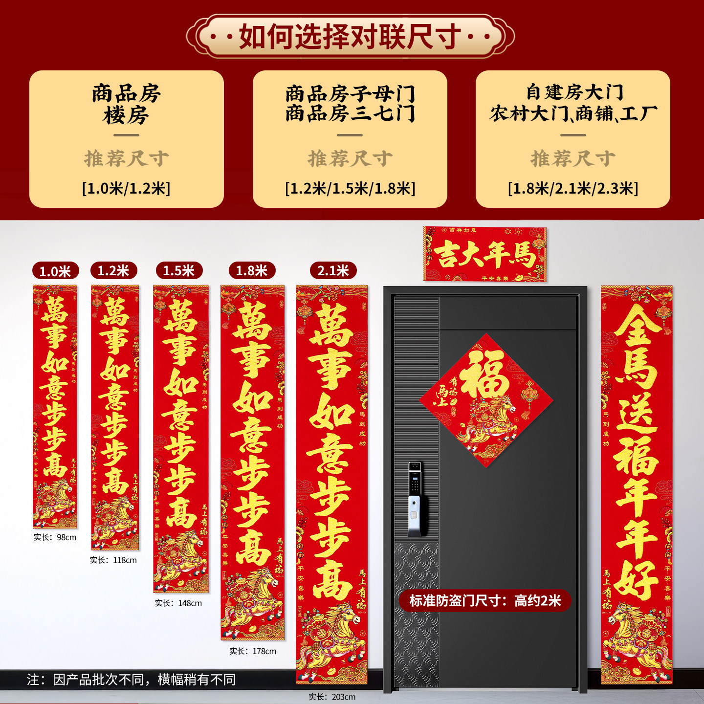 对联2026马年新款 高档绒布带背胶百福大气书法农村入户大门春联