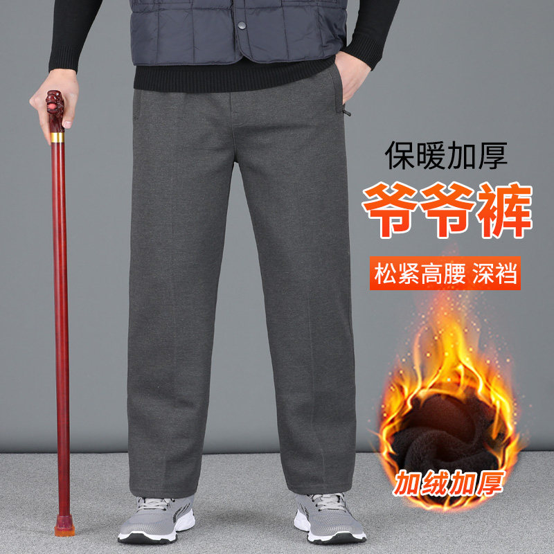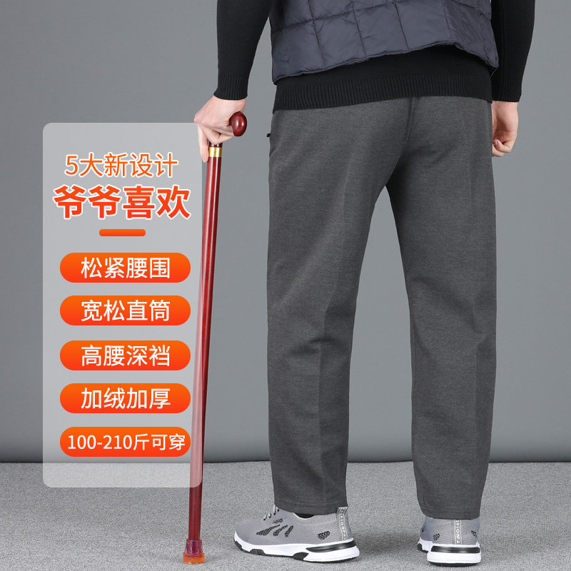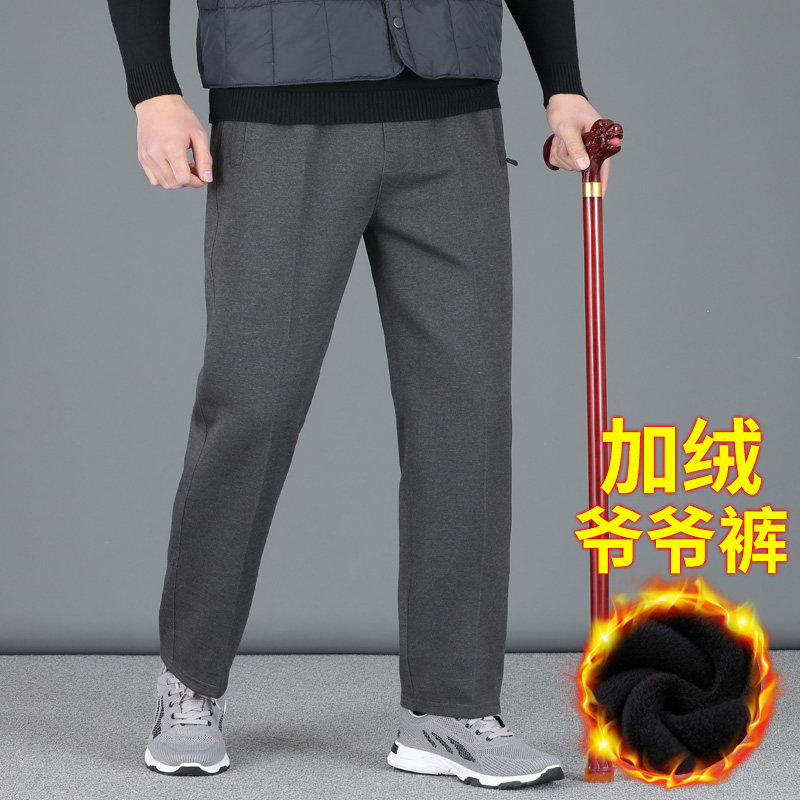 中老人爷爷运动裤 长裤 男80岁90加绒裤 爸爸休闲裤 子松紧腰男士 冬季