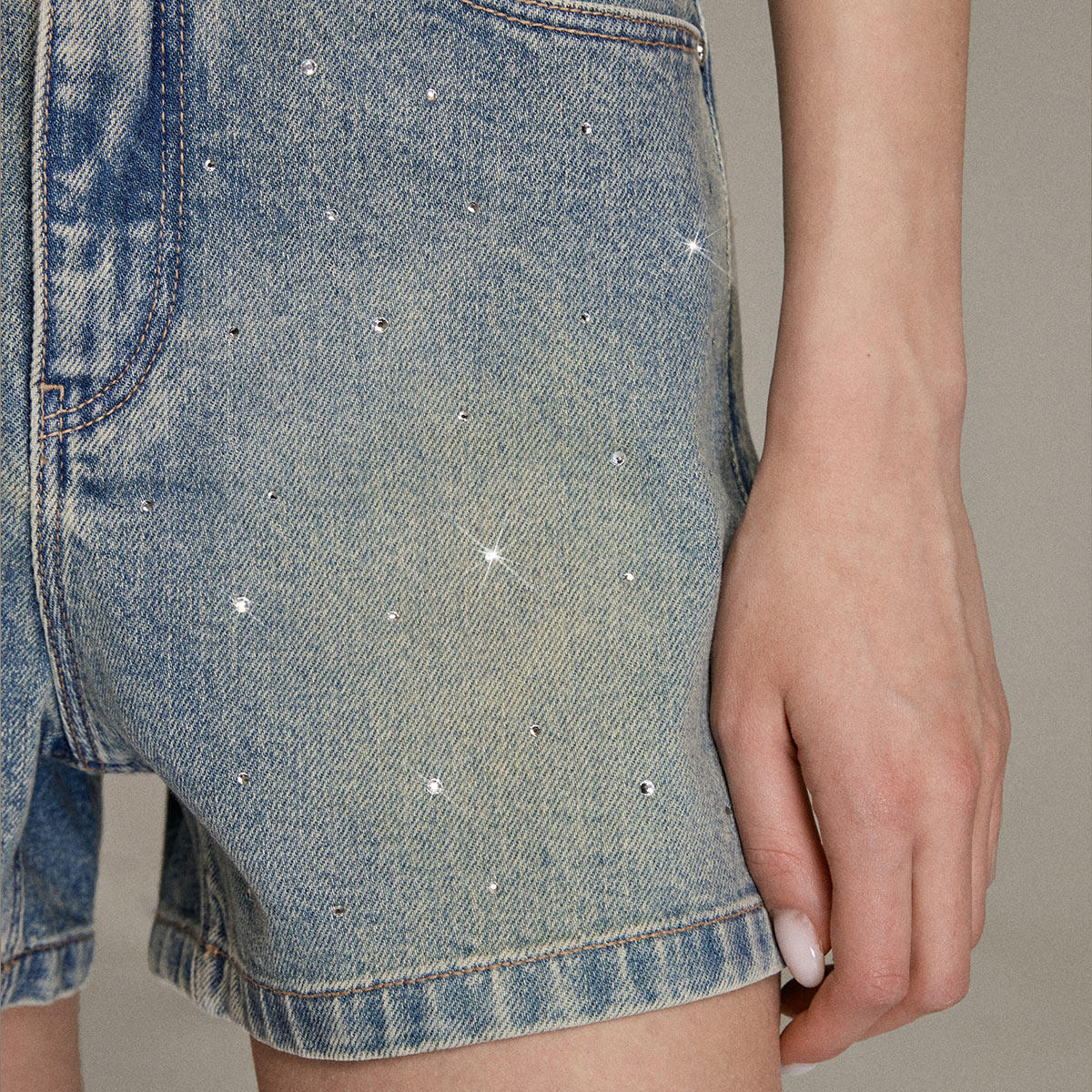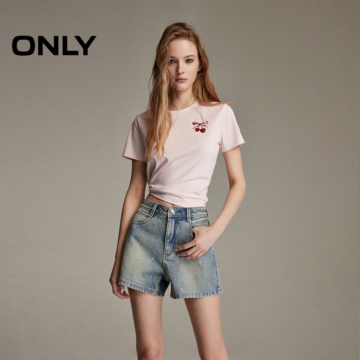莱卡辣妹风闪耀亮钻装 新款 ONLY2026春季 饰A字短牛仔裤 满天星
