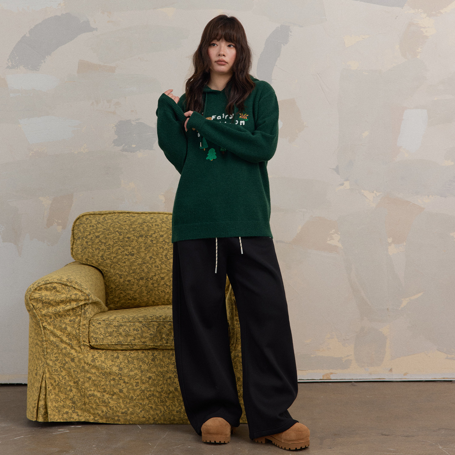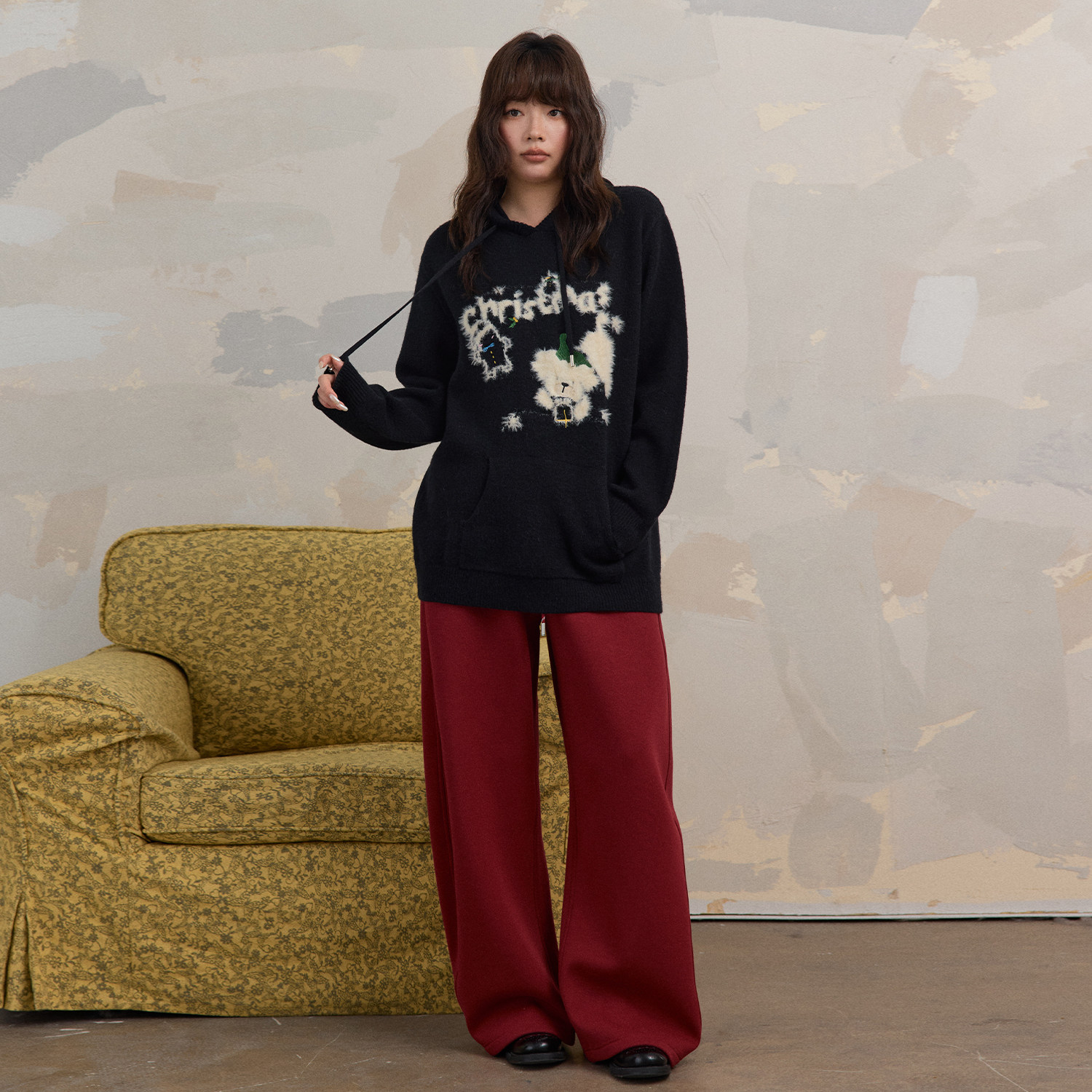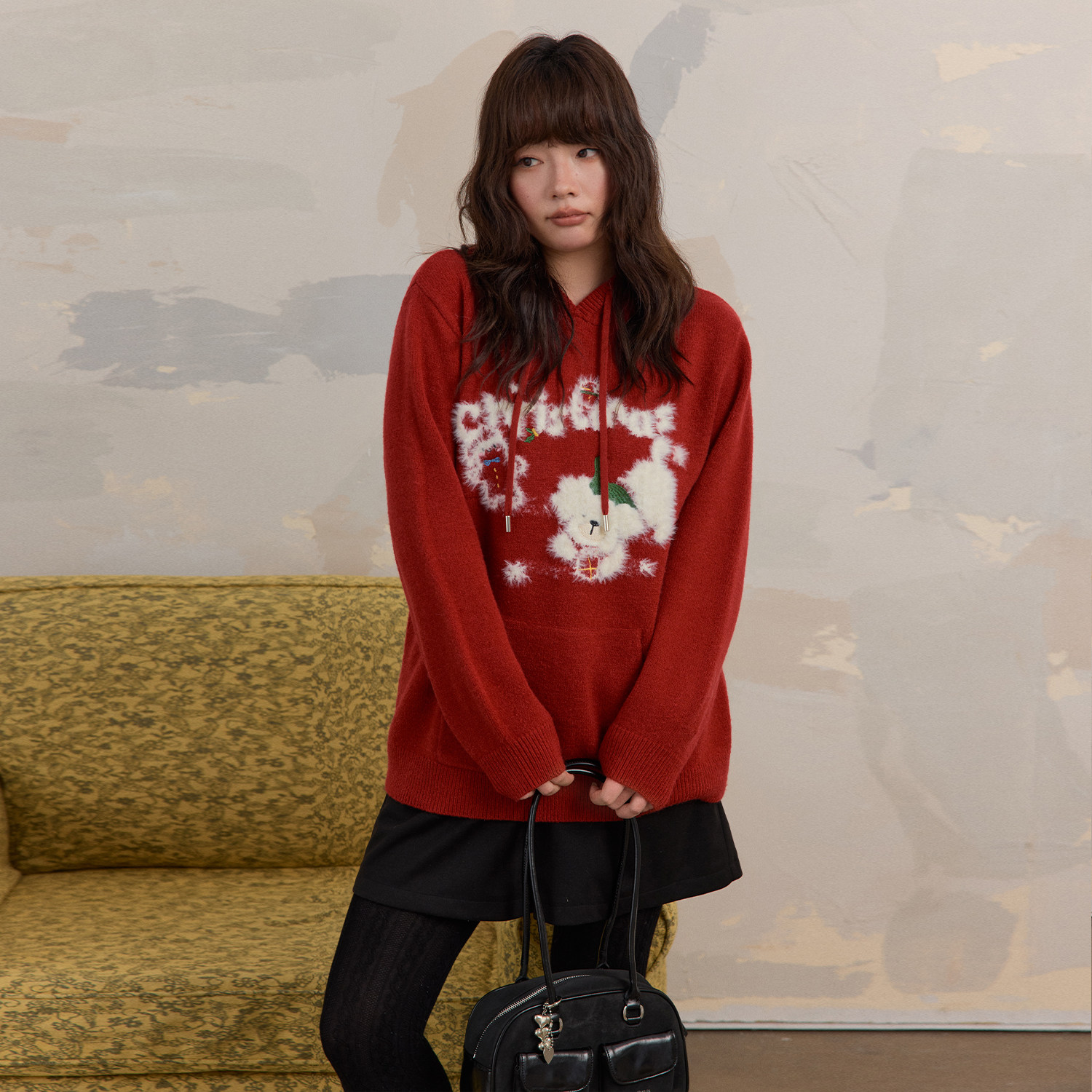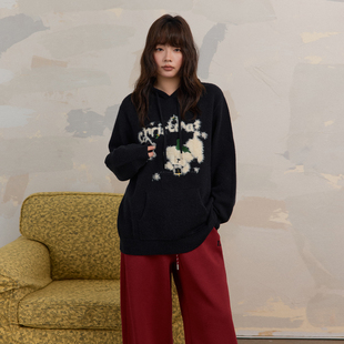 蕾蕾 胸前圣诞图案宽松连帽针织毛衣 圣诞家族