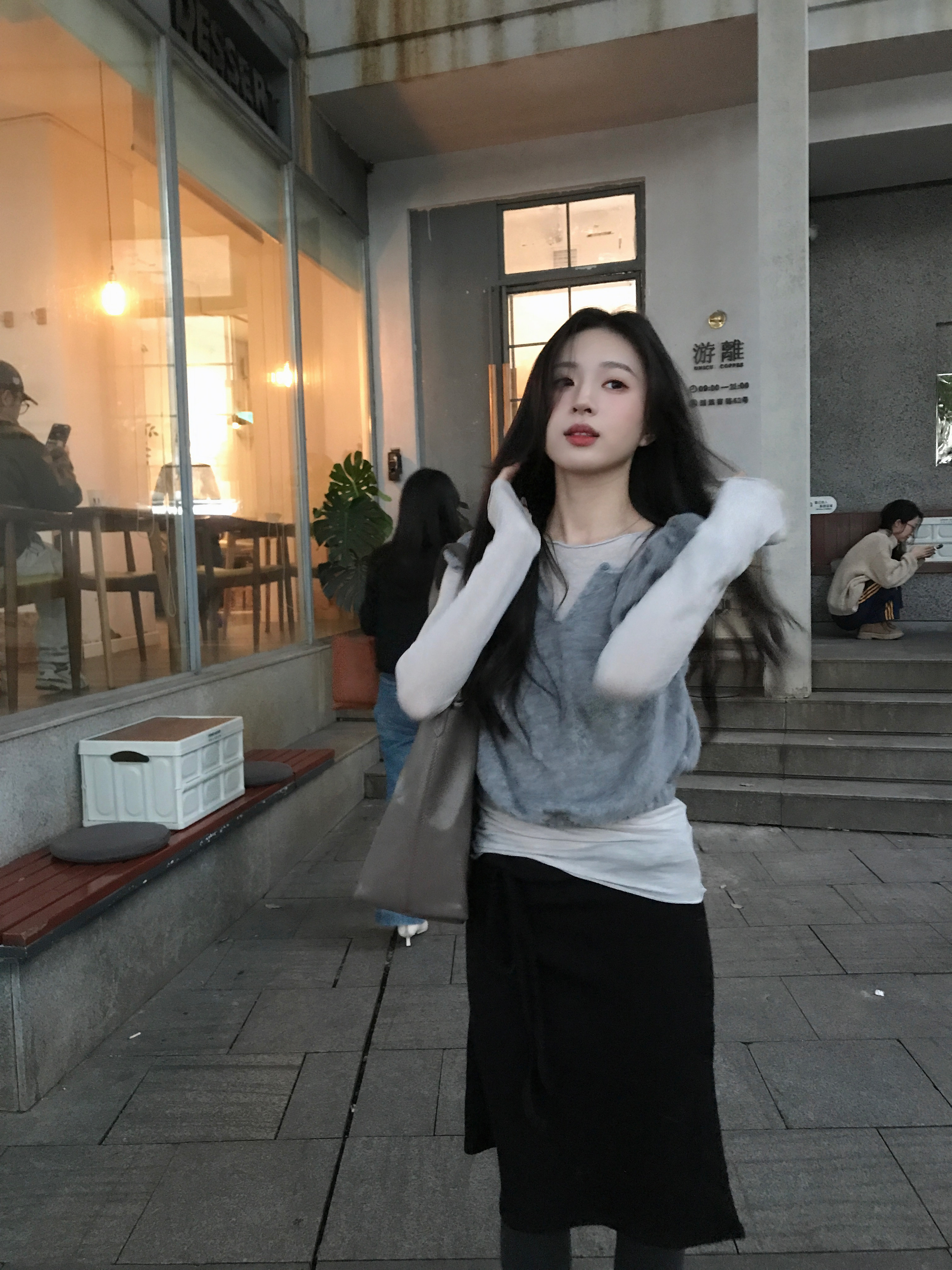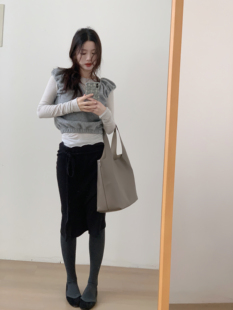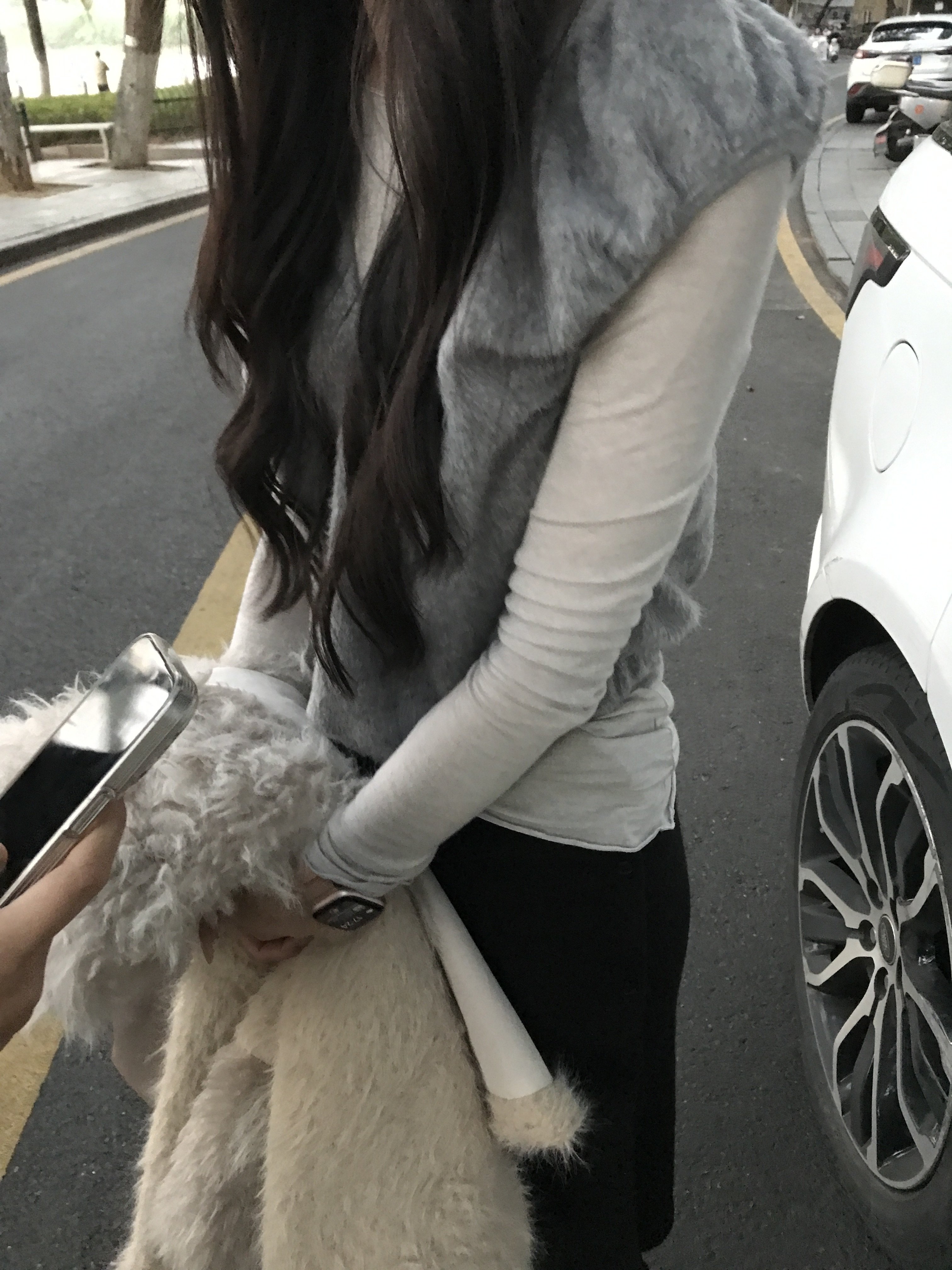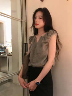 松紧腰上衣 v领泡泡袖 叠穿单品 毛绒背心 鱼没放