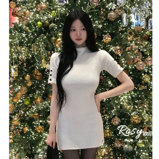 ASA 春秋强推苣弹柔糯美丽奴羊毛极简后开衩CHAO长QQ糖T恤连衣裙