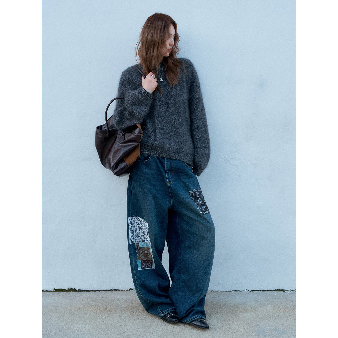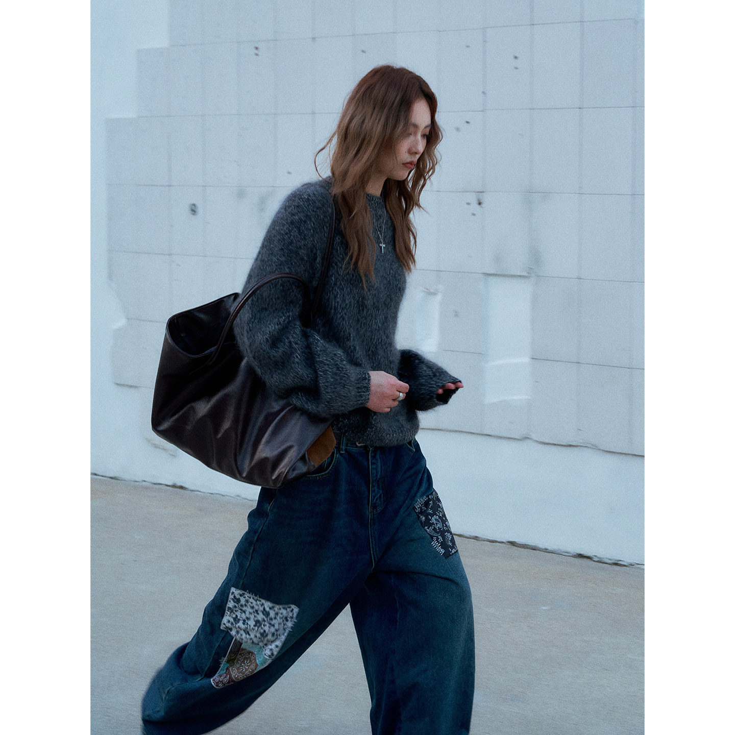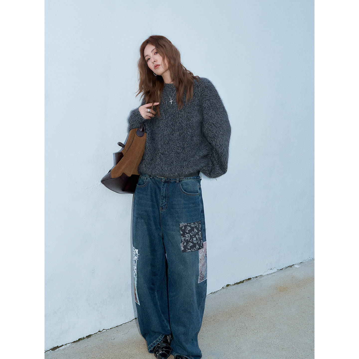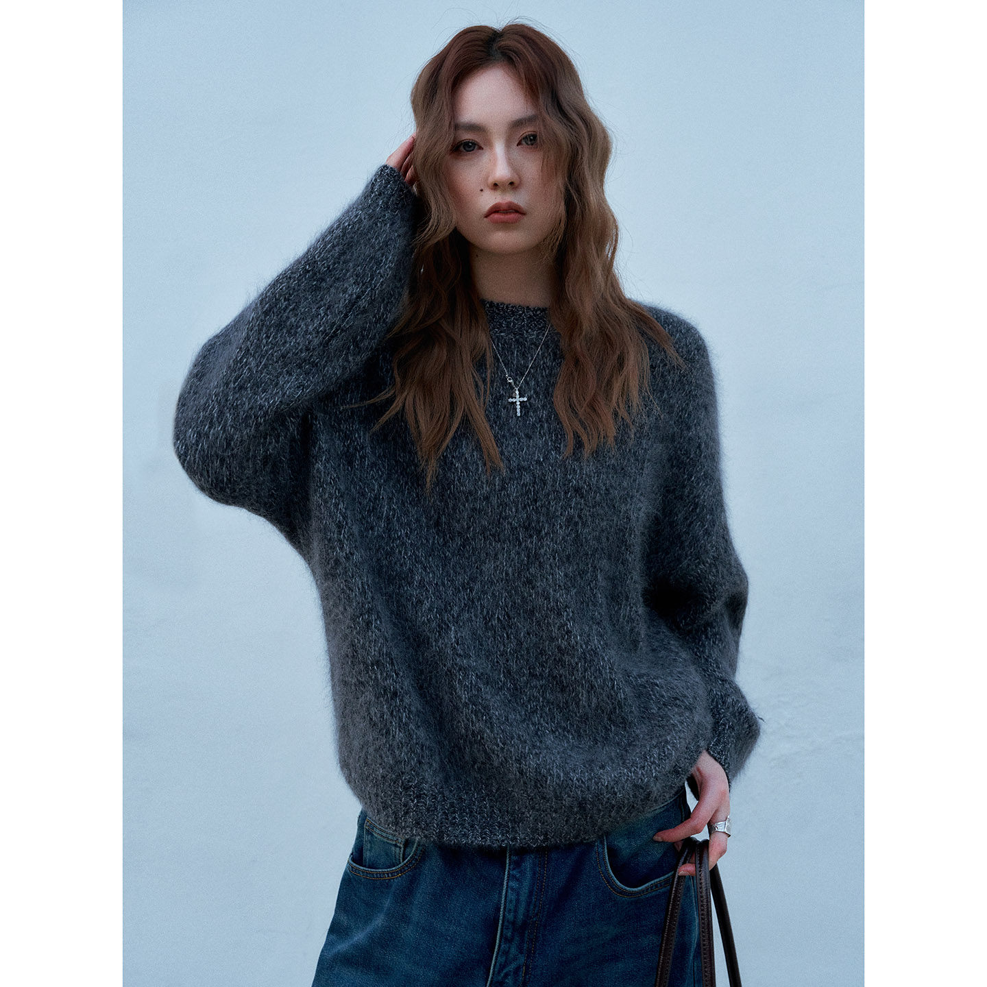 重磅软糯保暖羊毛毛衣女秋冬圆领套头针织衫 洛边 灰色轨迹