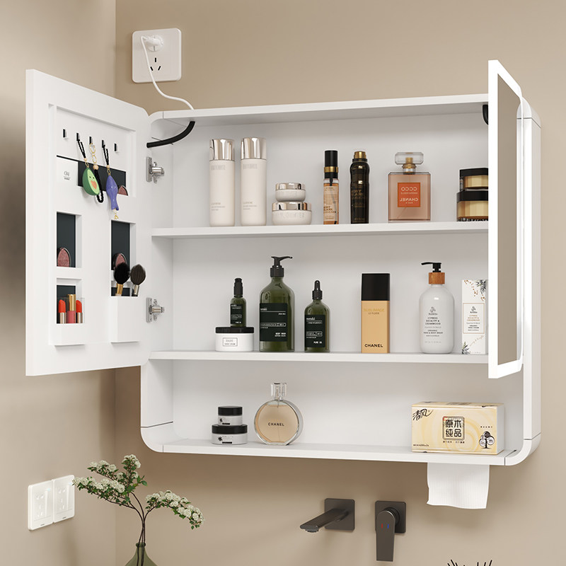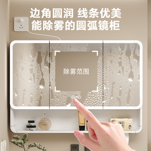 新款 智能镜柜带灯壁挂镜箱定制 实木圆角浴室镜柜单独卫生间挂墙式