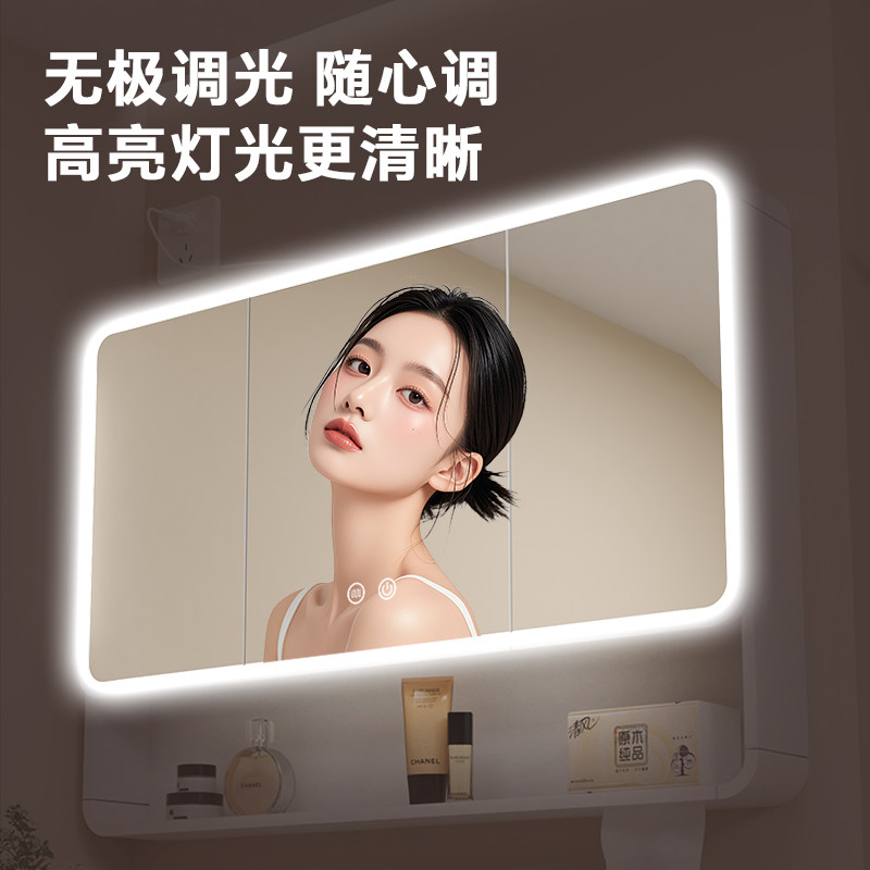 定制兔宝宝实木智能浴室镜柜单独收纳柜多功能美妆除雾卫生间镜子
