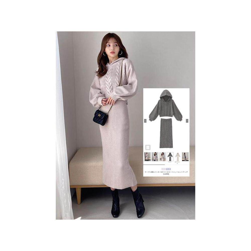 rut888半身裙 X紧身裙针织套装 日本直邮日潮 GRL绞花针织连帽衫