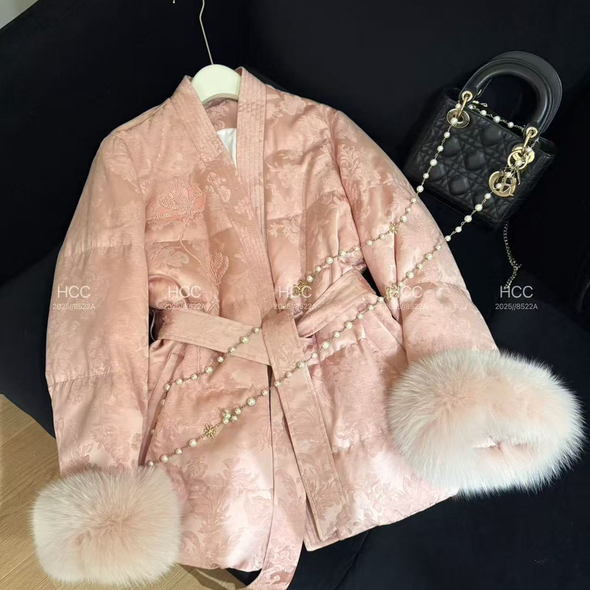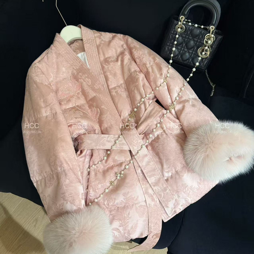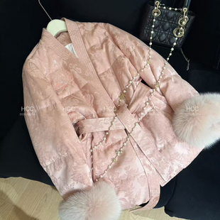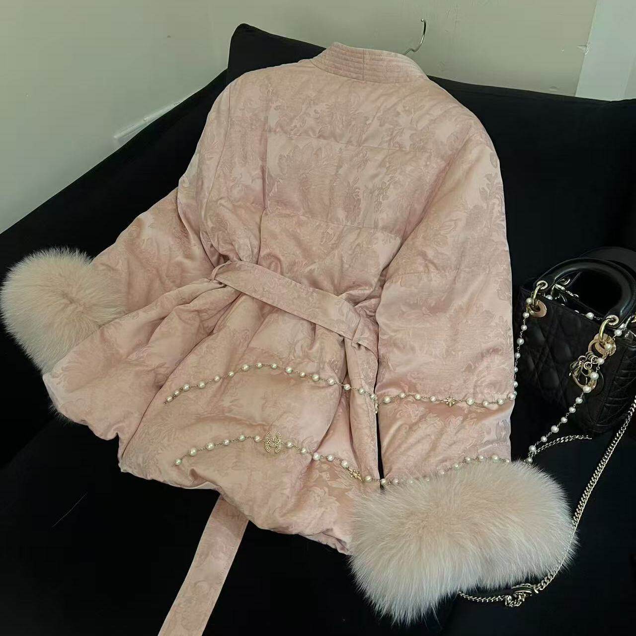 129 米米中长新中式 毛 配腰带可拆真水貂毛袖 036 保暖羽绒服外套