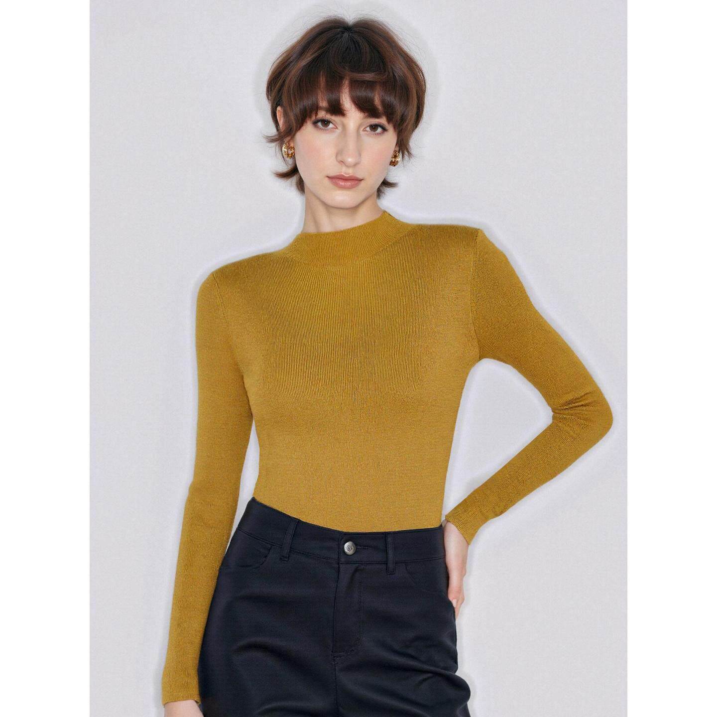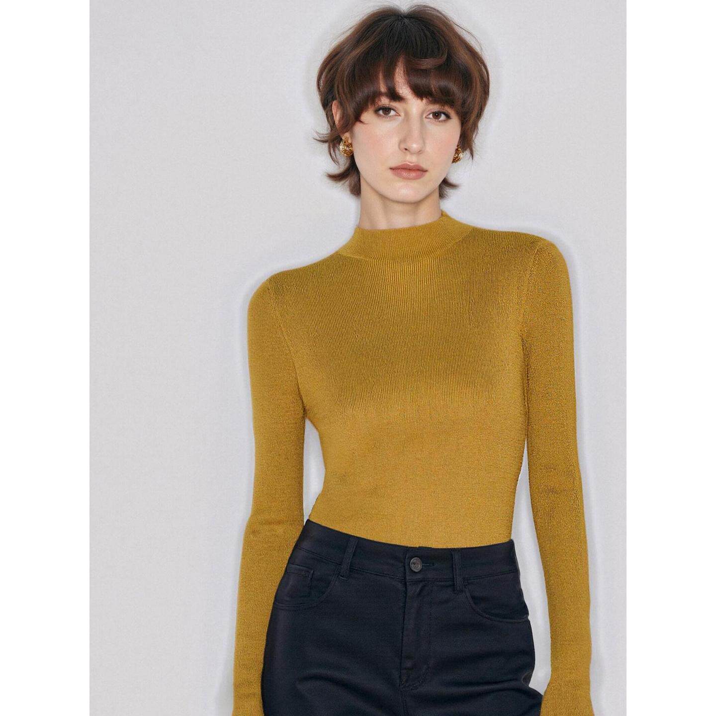 内搭修身 Basic 女春季 百家好黄色半高领针织衫 软糯打底毛衣 House