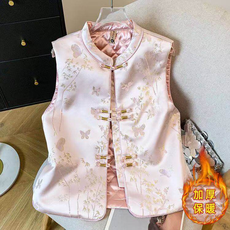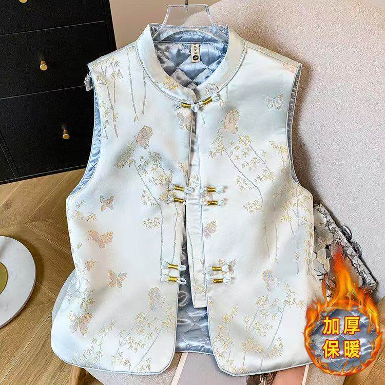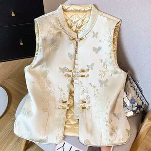 立领盘扣背心显瘦外穿加厚保暖轻奢时尚 国风刺绣马甲女 气质新中式