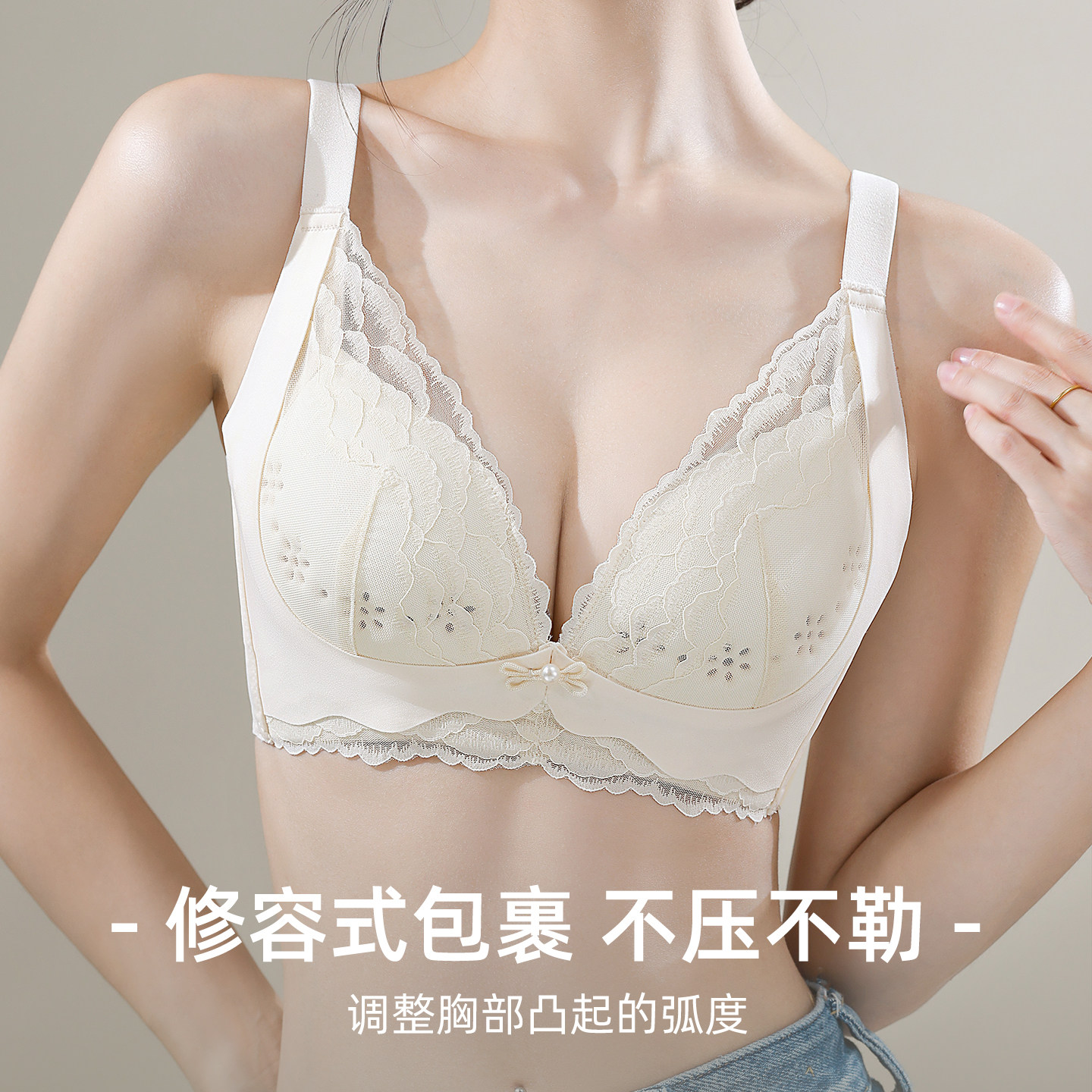 婷美小胸聚拢内衣女士防下垂收副乳法式 性感蕾丝显大调整型文胸罩