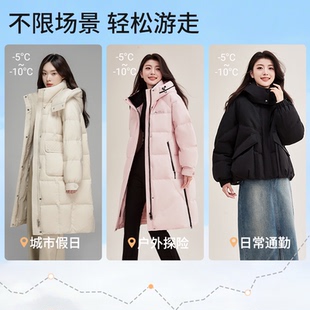 衣服女款 李宁火锅羽绒服 长款 2025新款 连帽鹅绒保暖运动上衣 冬季