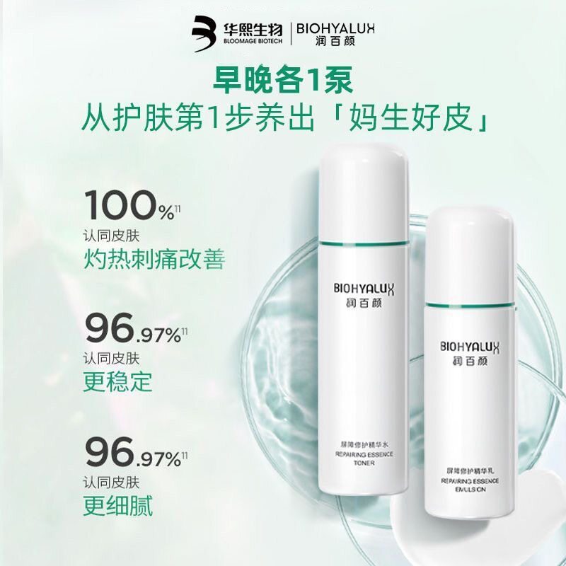护肤套装 100g敏感肌补水保湿 120ml 润百颜屏障修护水乳白纱布套装