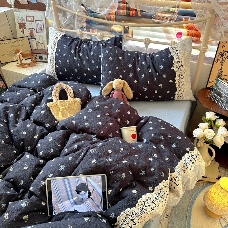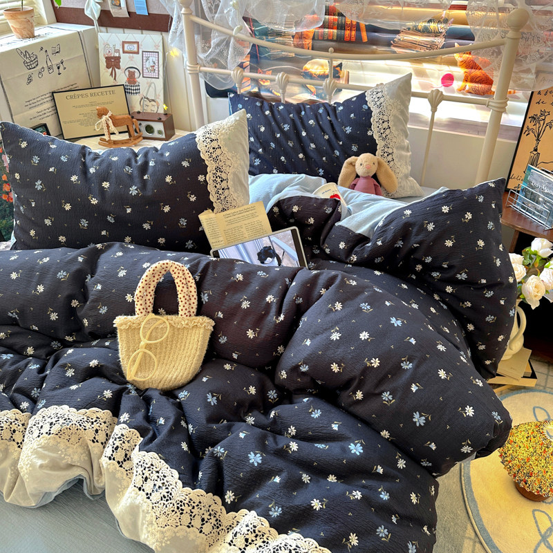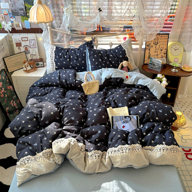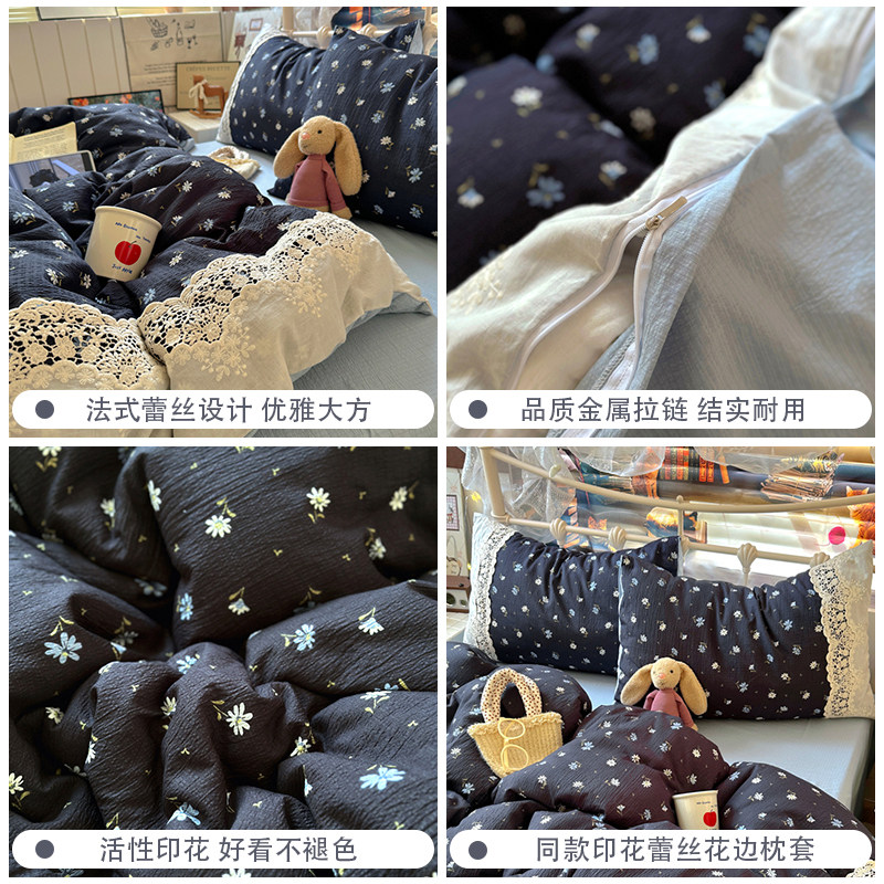 ins蕾丝花边四件套纯棉全棉加厚秋冬床上用品被套床单宿舍三件套4