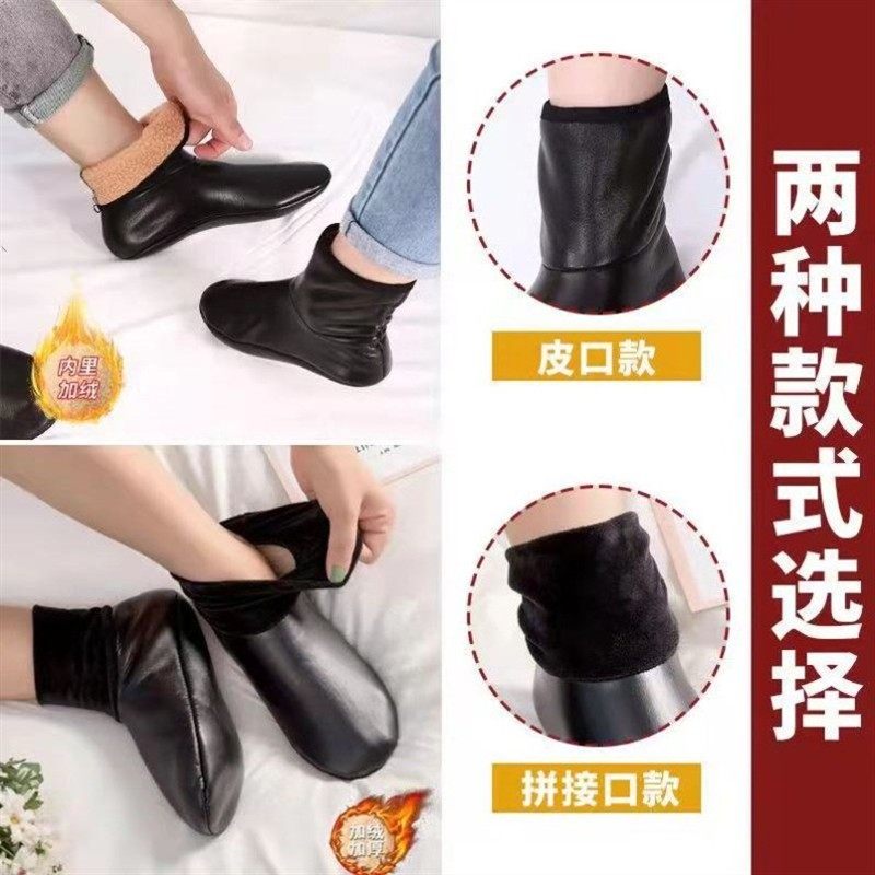皮袜保暖地板袜成人男女袜套情侣冬季 加绒加厚防滑底高筒皮袜防水