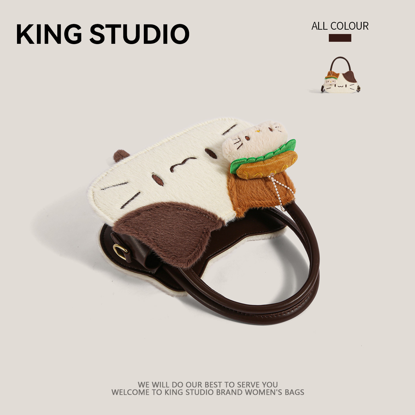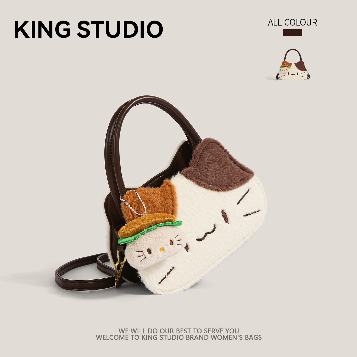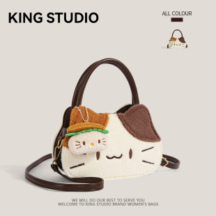 可爱三花猫手提包包女2026新款 百搭卡通搞怪单肩斜挎包 潮小众时尚