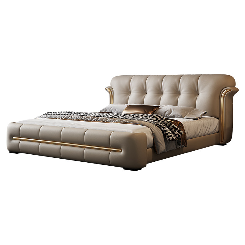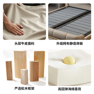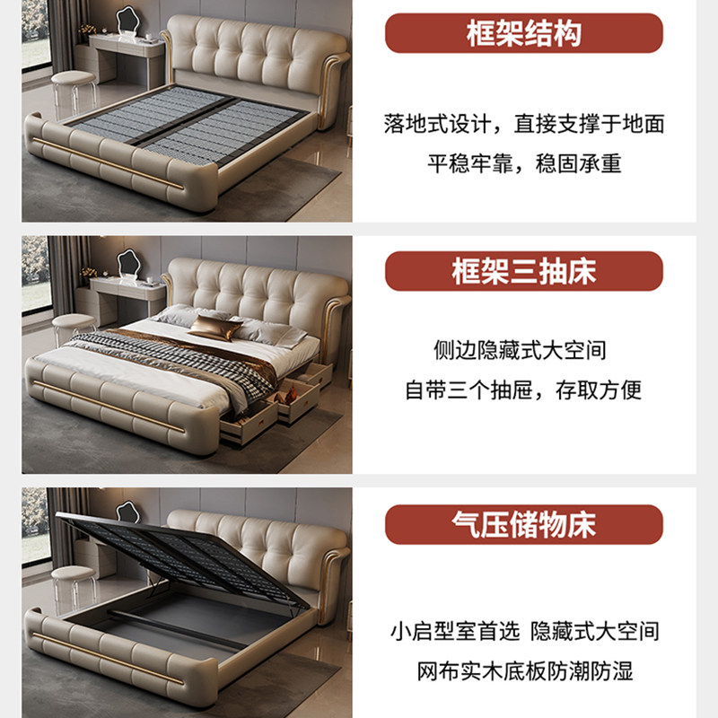 政府补贴蓝色理想轻奢真皮床主卧高端大气奶油风储物双人软包婚床