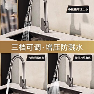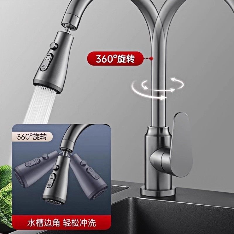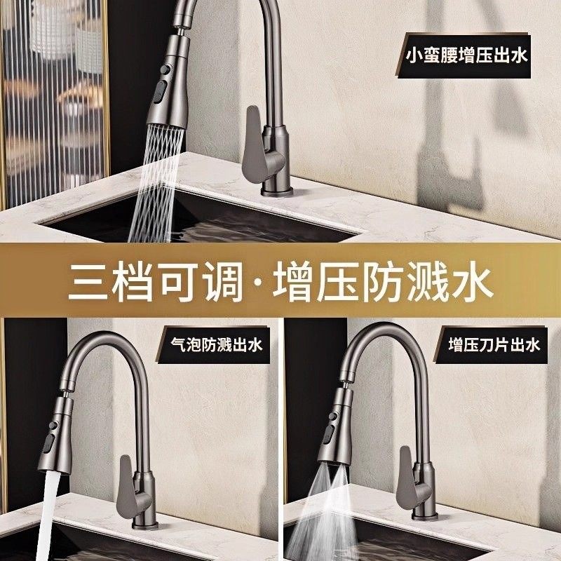 包安装 伸缩冷热水槽洗菜盆洗碗池360度旋转全铜 厨房水龙头抽拉式