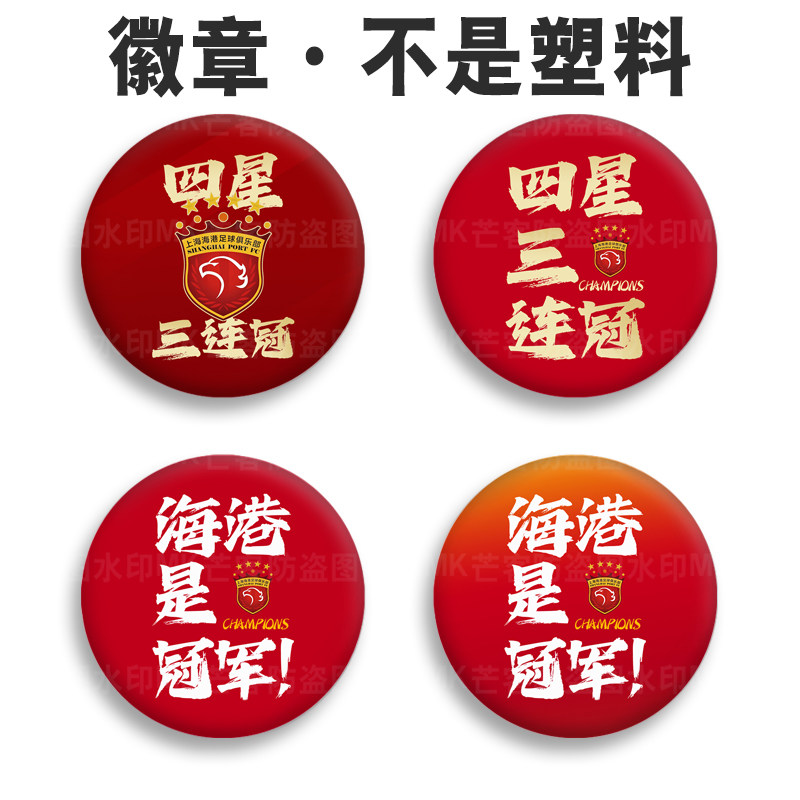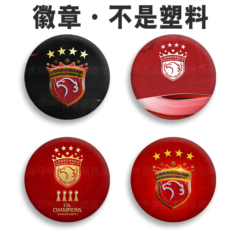 上港足球队徽中超三连冠别针吧唧谷子金属胸针上海海港四星勋章扣