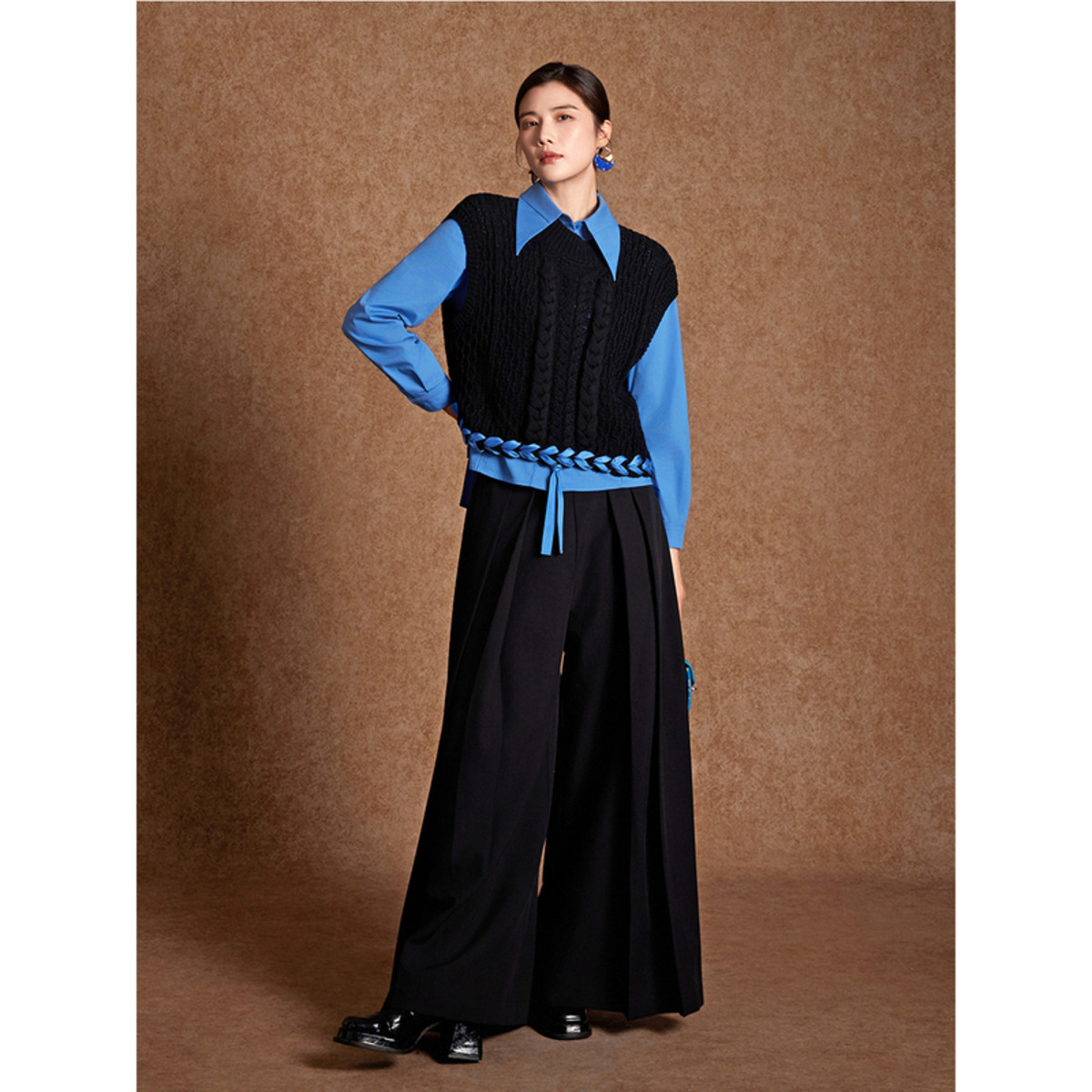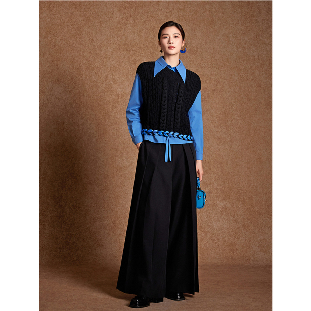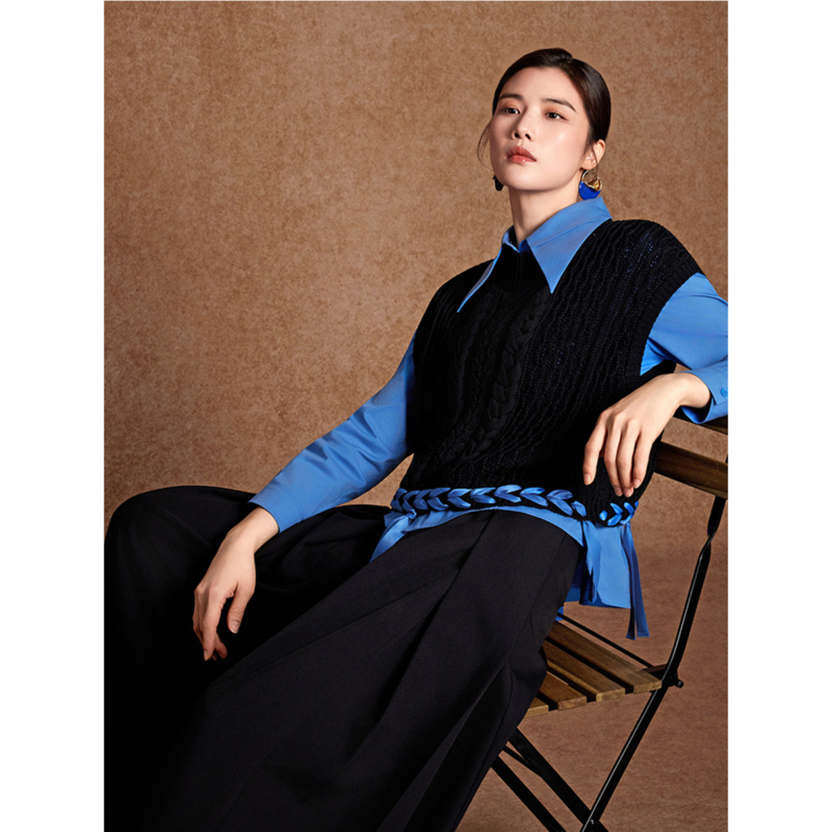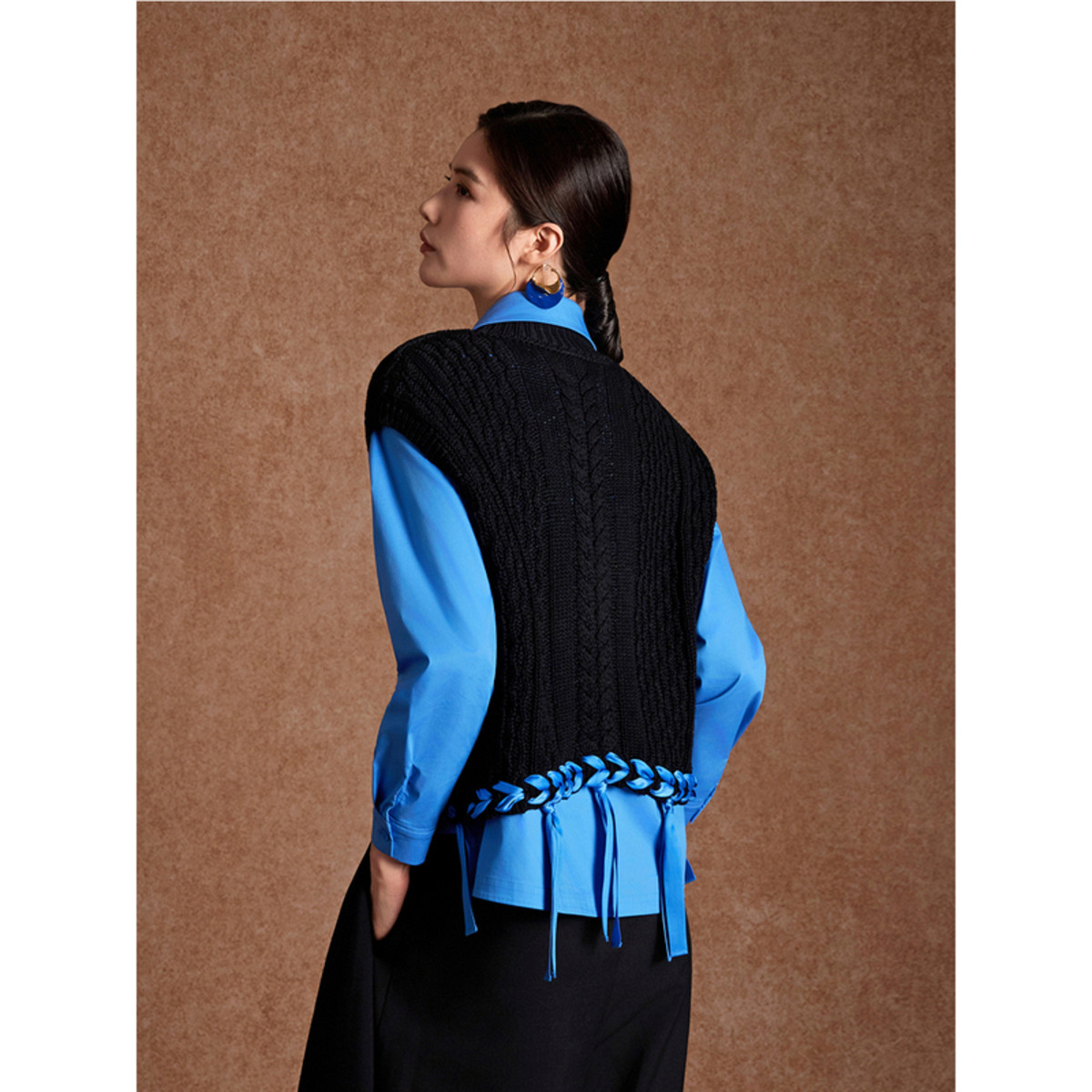 BBLLUUEE粉蓝衣橱2026春新款 手工织带外套匠心绞花工艺针织马甲女