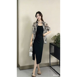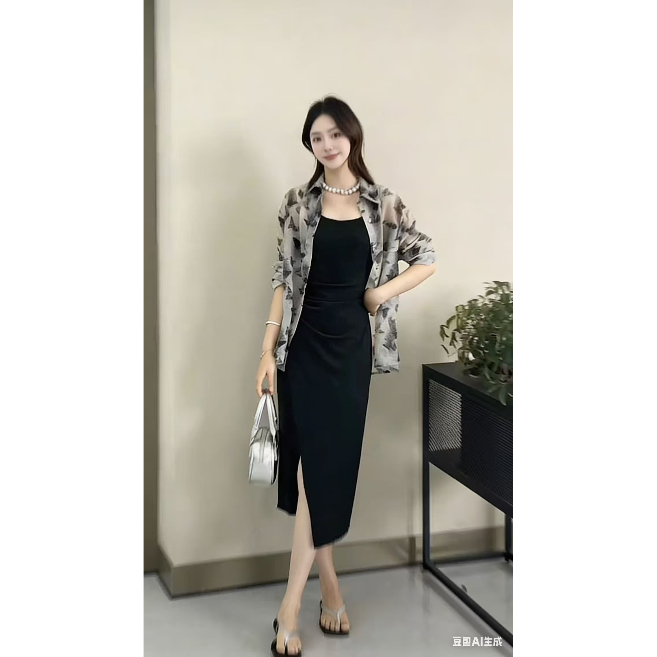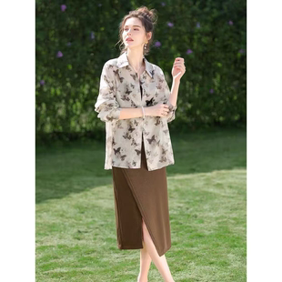 春装 搭中长款 新款 衬衫 吊带裙两件套套裙JR 印花长袖 T088