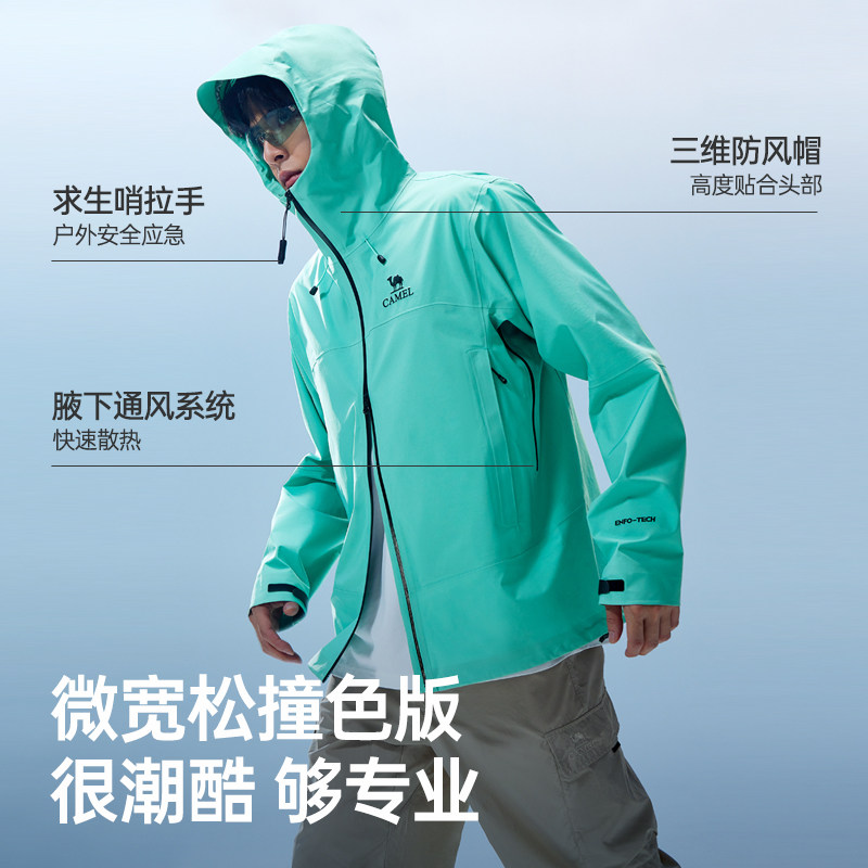 骆驼3L硬壳冲锋衣男女款 户外暴雨级防水登山服外套男 2026春秋新款