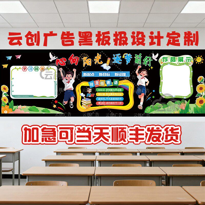 2026新年梦想启航开学励志黑板报装 饰墙贴画定制kt板新学期文化