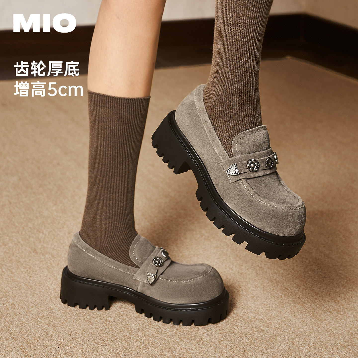 MIO米奥乐福鞋 柏欣妤同款 罗予彤 女英伦厚底增高5cm 哼哈冰冰