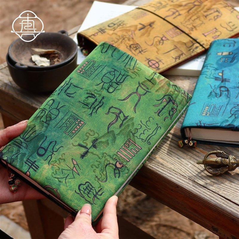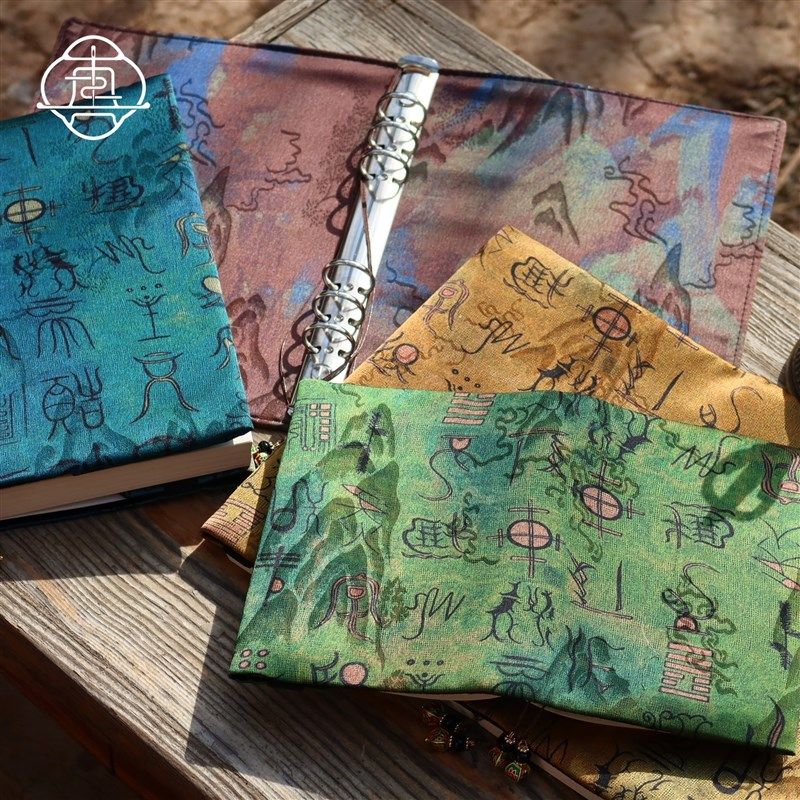 手账本手工布书衣日记本笔记本a5a6 国风新中式 真我 青绿甲骨文