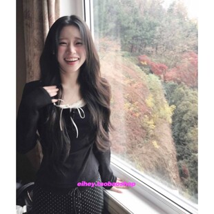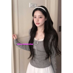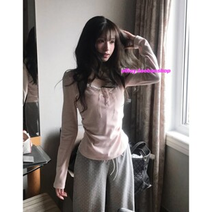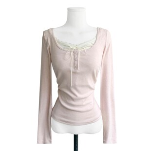 eihey诶嘿早春韩系温柔纯欲风假两件显瘦百搭蕾丝边长袖 T恤上衣女