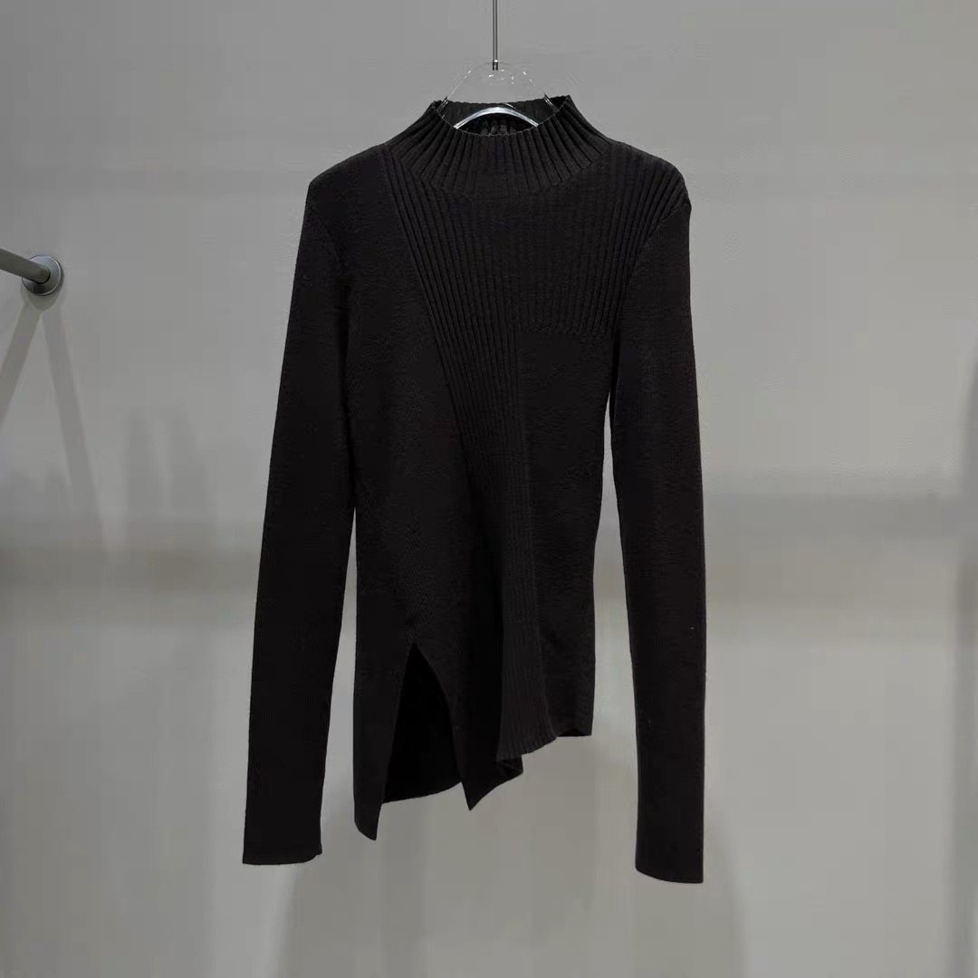 C103 8062 艾半高领不规则开叉毛衣打底针织衫