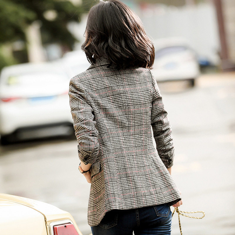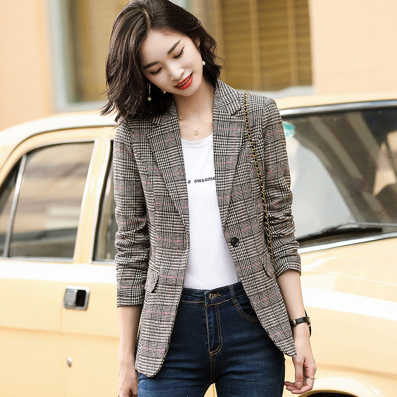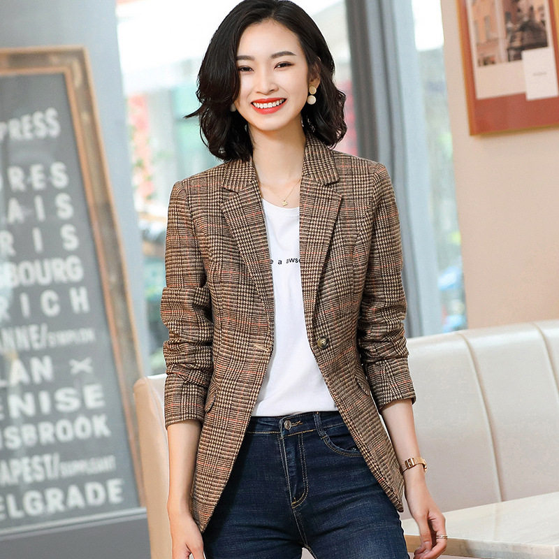 卡其色小个子休闲短款 韩版 毛呢小西服 外套女2025秋冬新款 格子西装