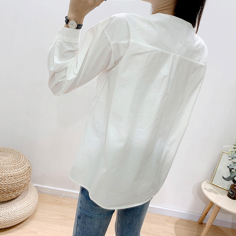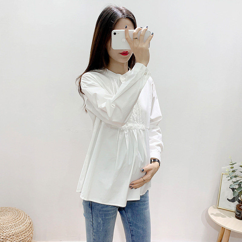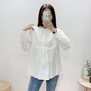 白色时尚 衬衫 大码 孕妇衬衣秋装 韩版 长袖 宽松中长款 百搭打底衣 新款
