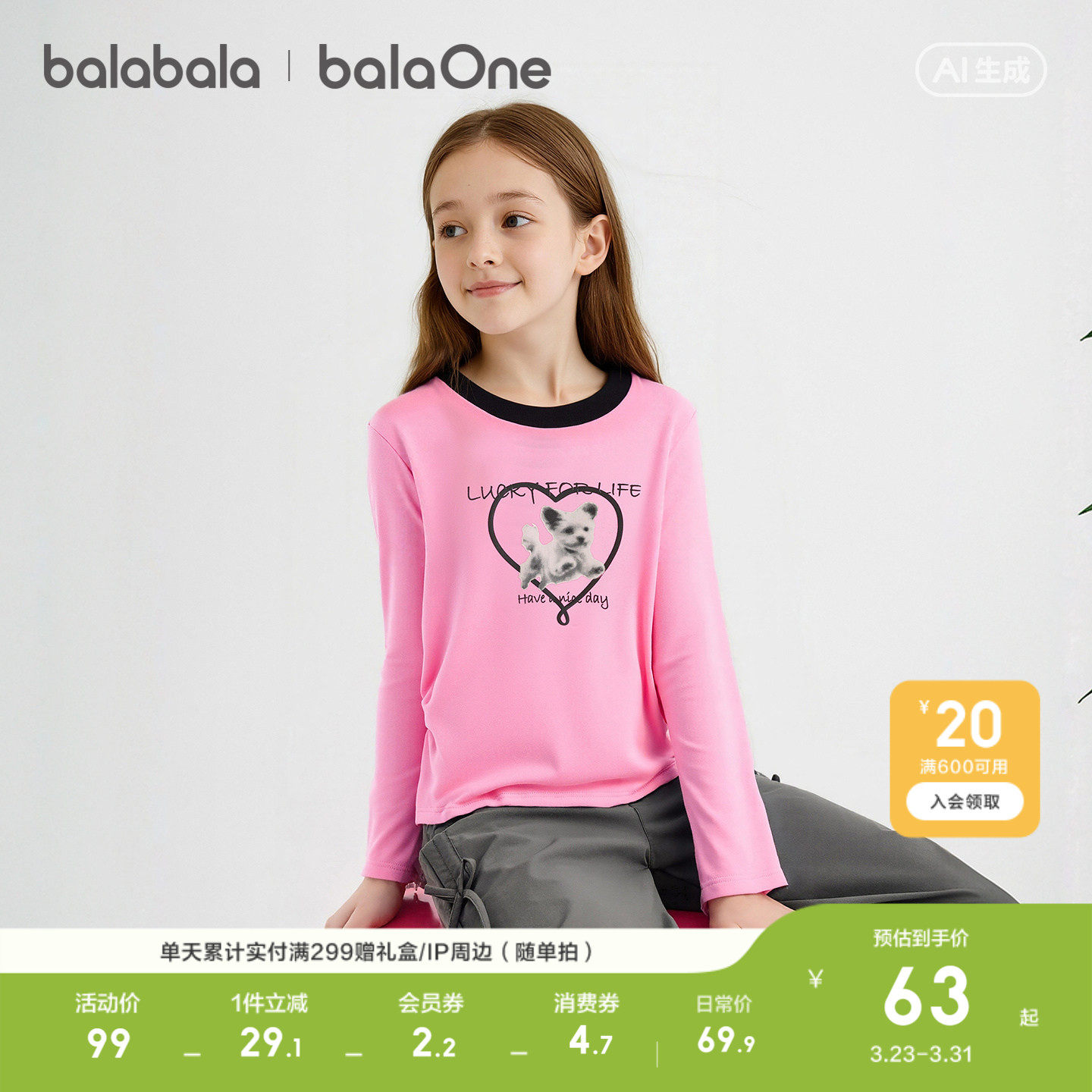 balaOne 新款 巴拉巴拉童装 t恤女童2026春季 收腰上衣潮 儿童长袖