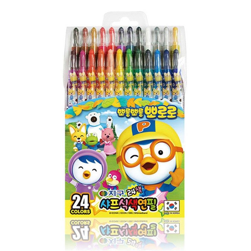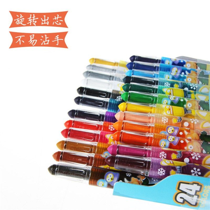 韩国宝露露小企鹅12色撕纸油画棒儿童24旋转啵乐乐蜡笔绘画彩色笔