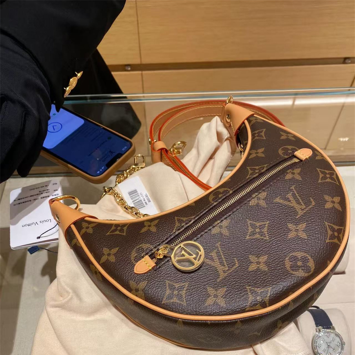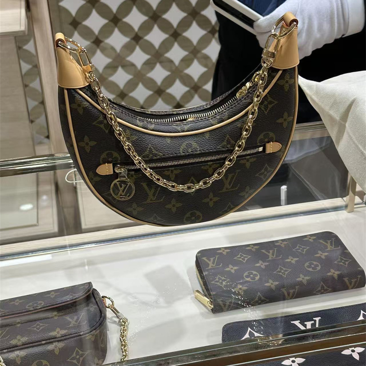 LV路易威登女包新款 Loop老花豌豆月亮包链条单肩斜挎腋下包M81098