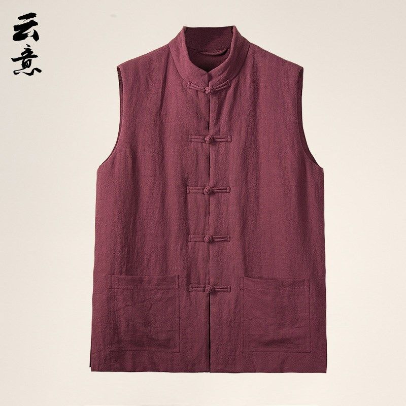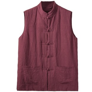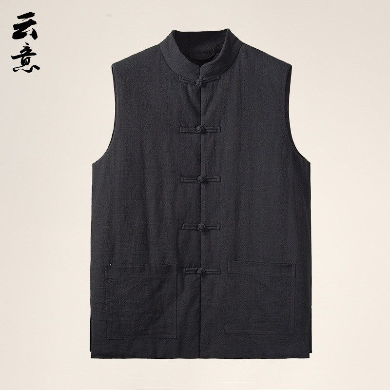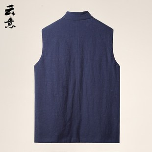 速发中甲风冬季 麻古马夹坎 亚复背心加厚棉马国男宽松盘扣立领唐装