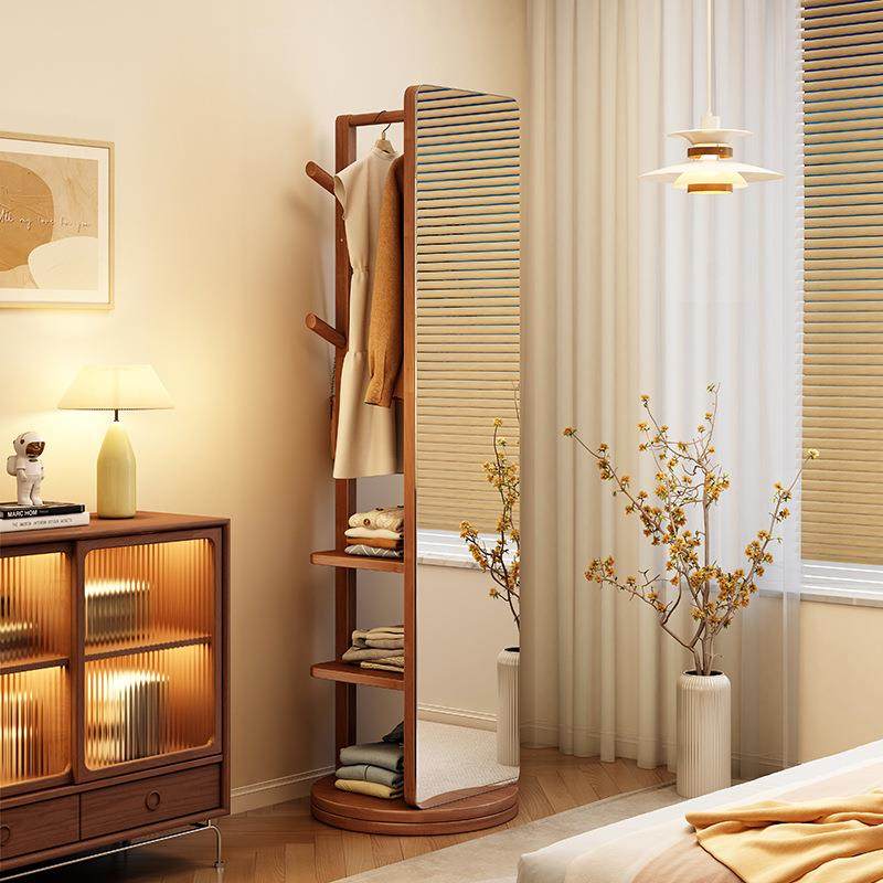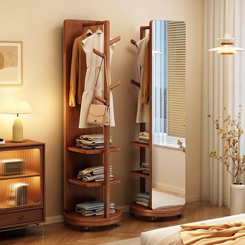 衣帽镜美式 试衣镜穿衣镜挂衣架一体家用落地镜卧室实木可移动旋转