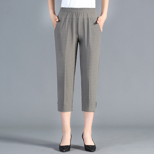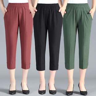 中年女装 妈妈装 休闲短裤 夏装 马裤 中老年女士松紧腰七分裤 中裤 新款