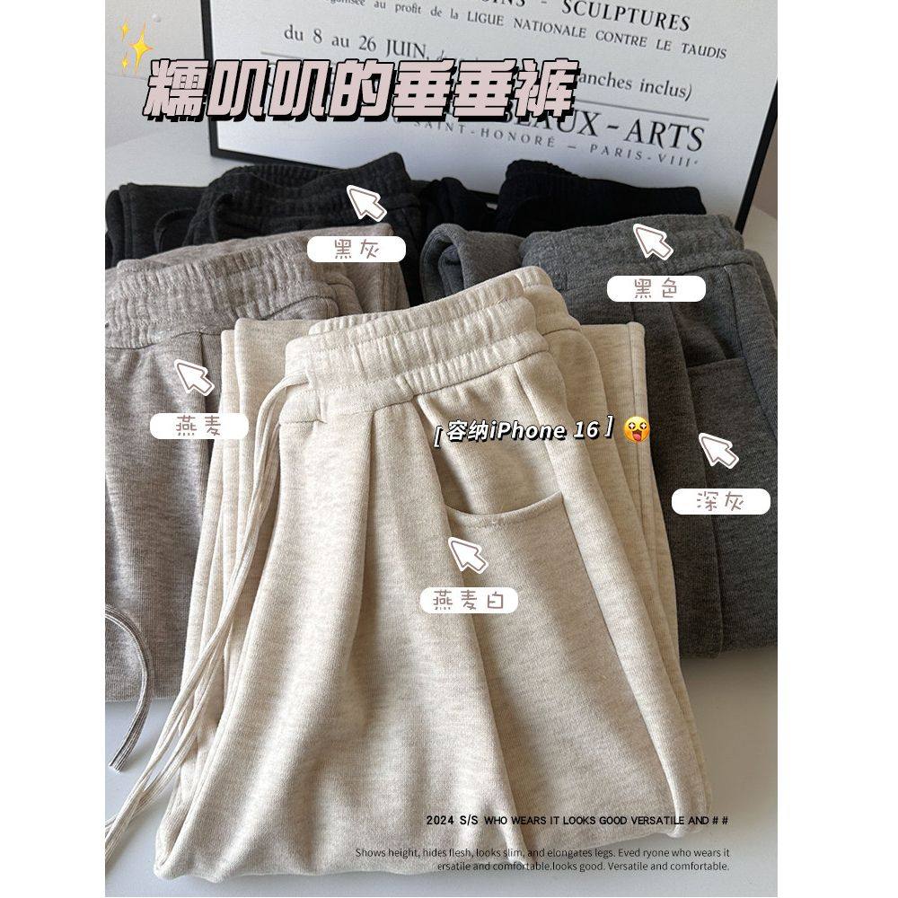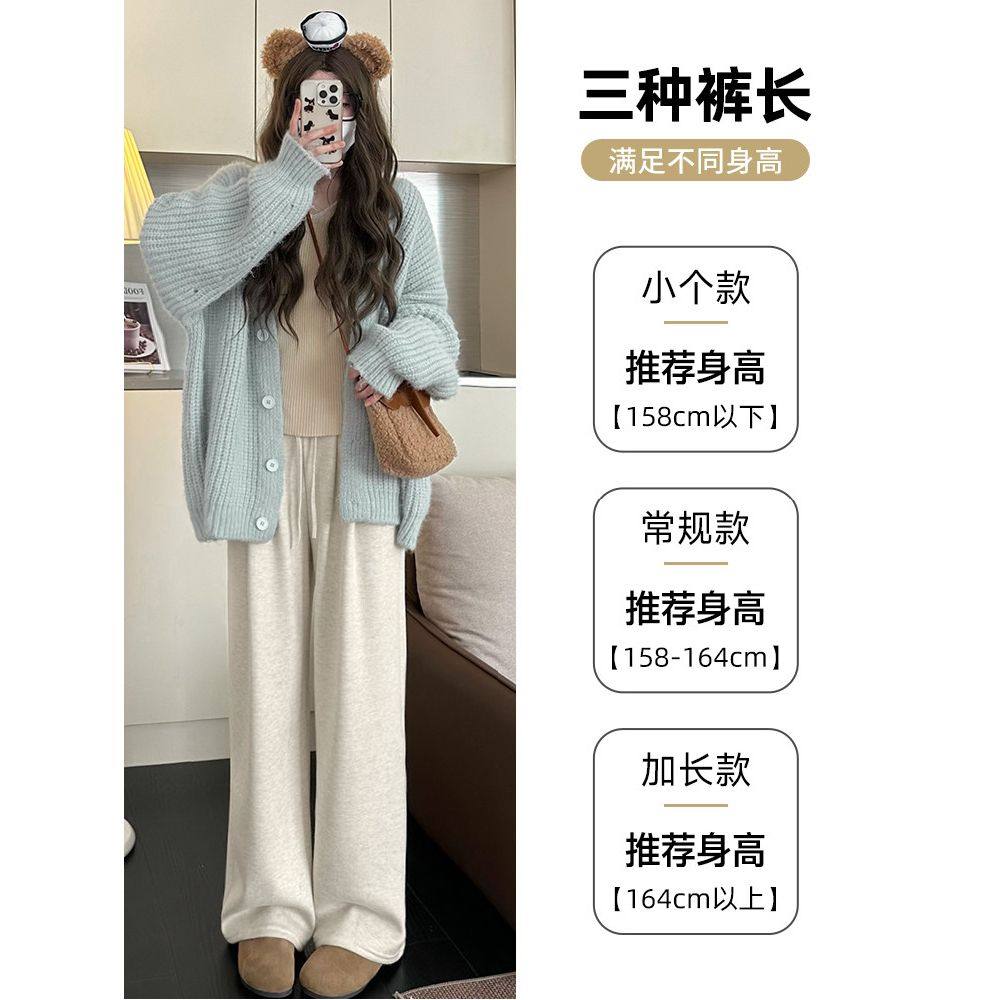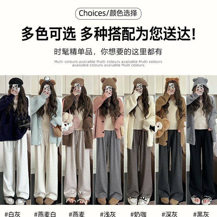高腰直筒垂感慵懒羊绒加绒小个子阔腿裤 灰色糯米裤 女秋冬2025新款