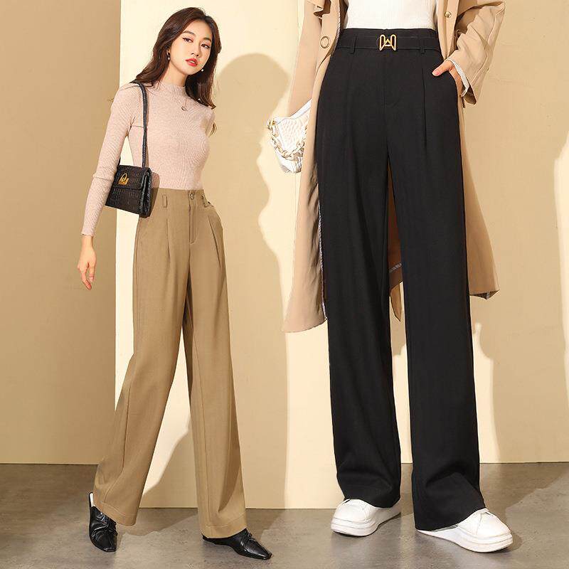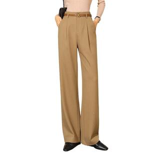 阔腿地裤 进口高端高796腰宽松垂感羊斜毛纹直休闲拖 女春秋筒新款